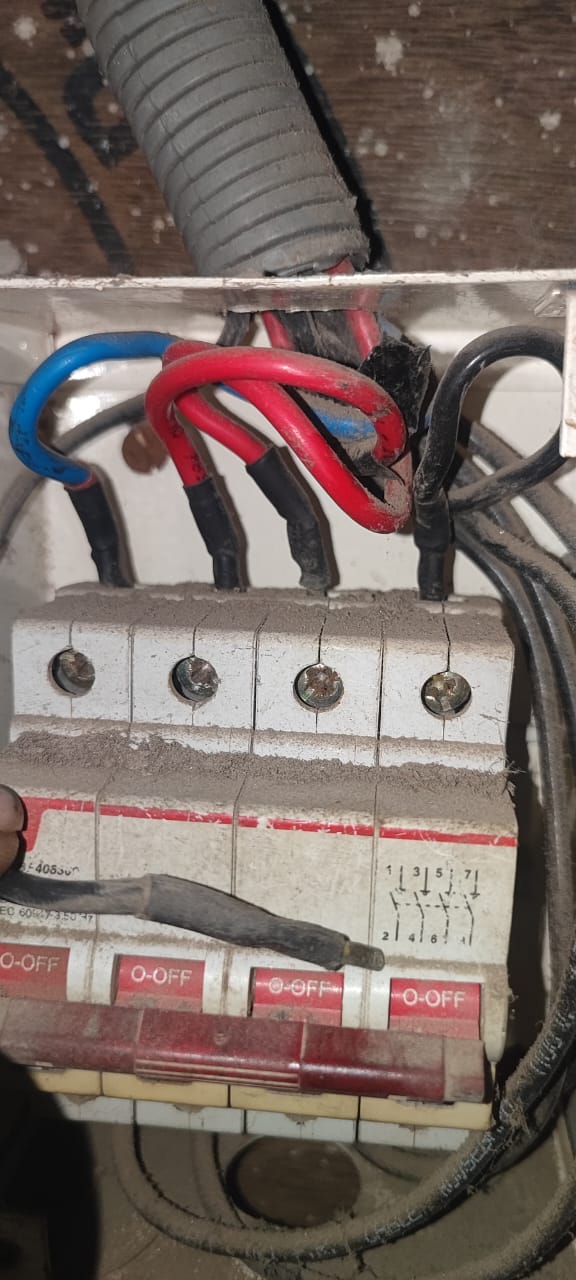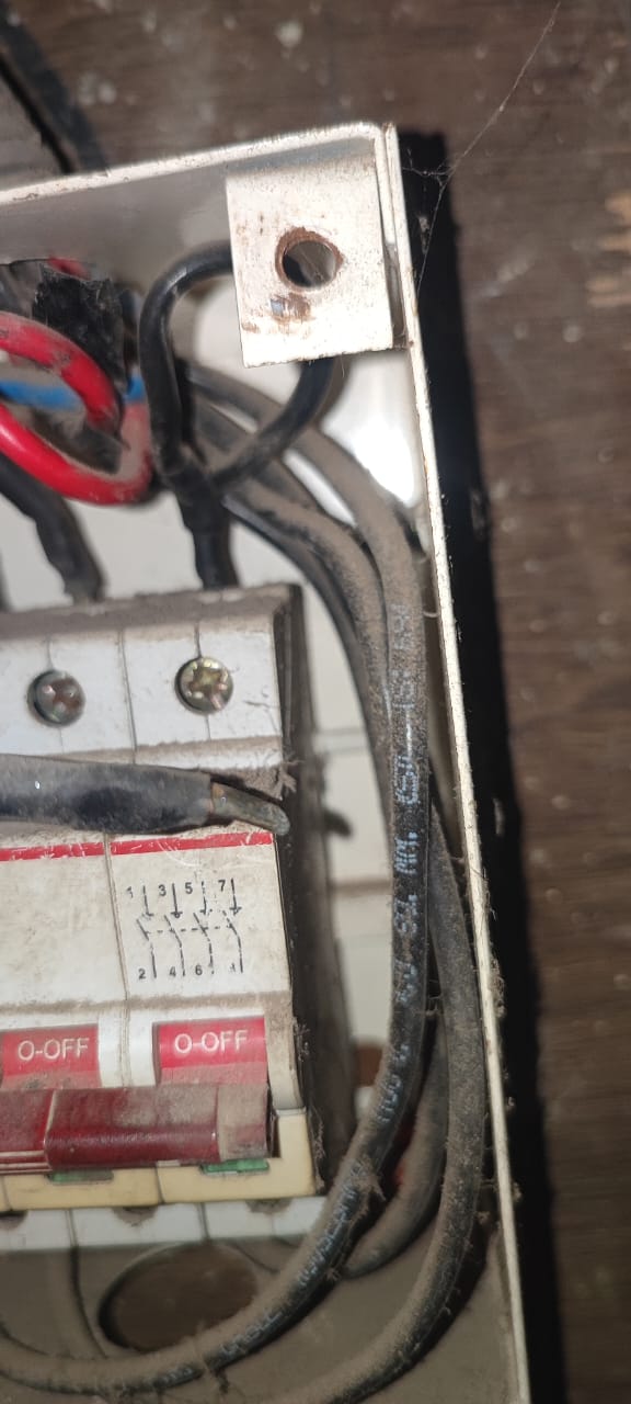 The 3-core 4 sq mm cable wraps around the walls towards the distribution box: