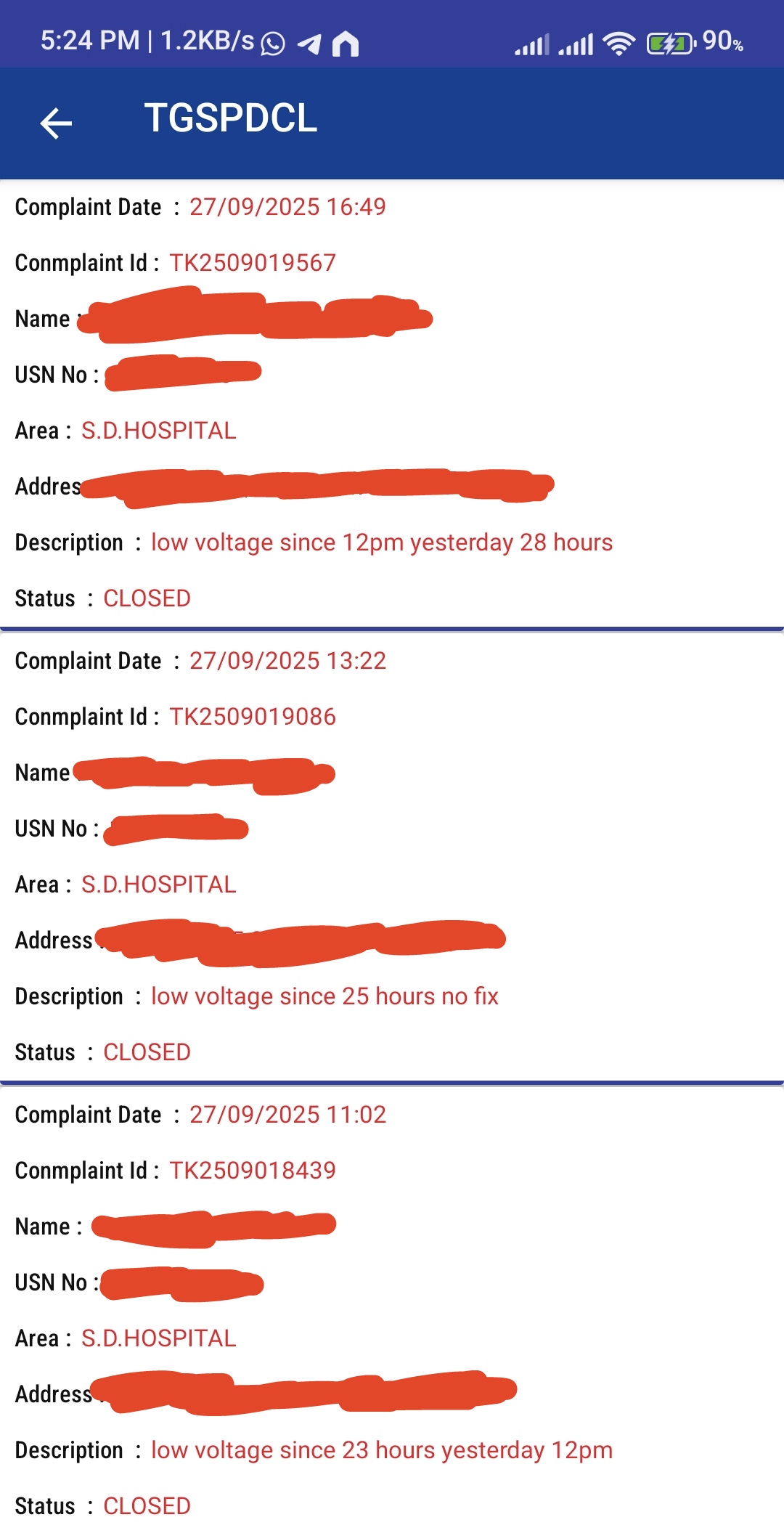 The electricity department has ignored all my complaints about low voltage, I think theyâre trying to appease whoever took a makeshift connection for whatever festival is happening. All my tickets get closed without anything being done: