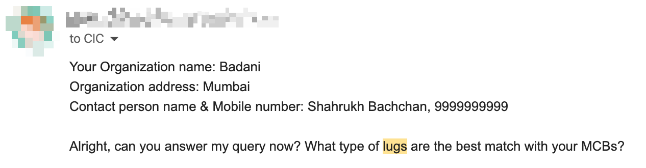I wasnât sure if they make a good contact in MCB. I searched over the internet but couldnât find reliable info on what type of lug I should be using. I fired up an email to L&T asking for their preference.