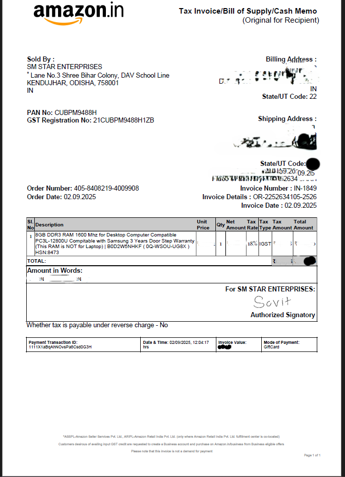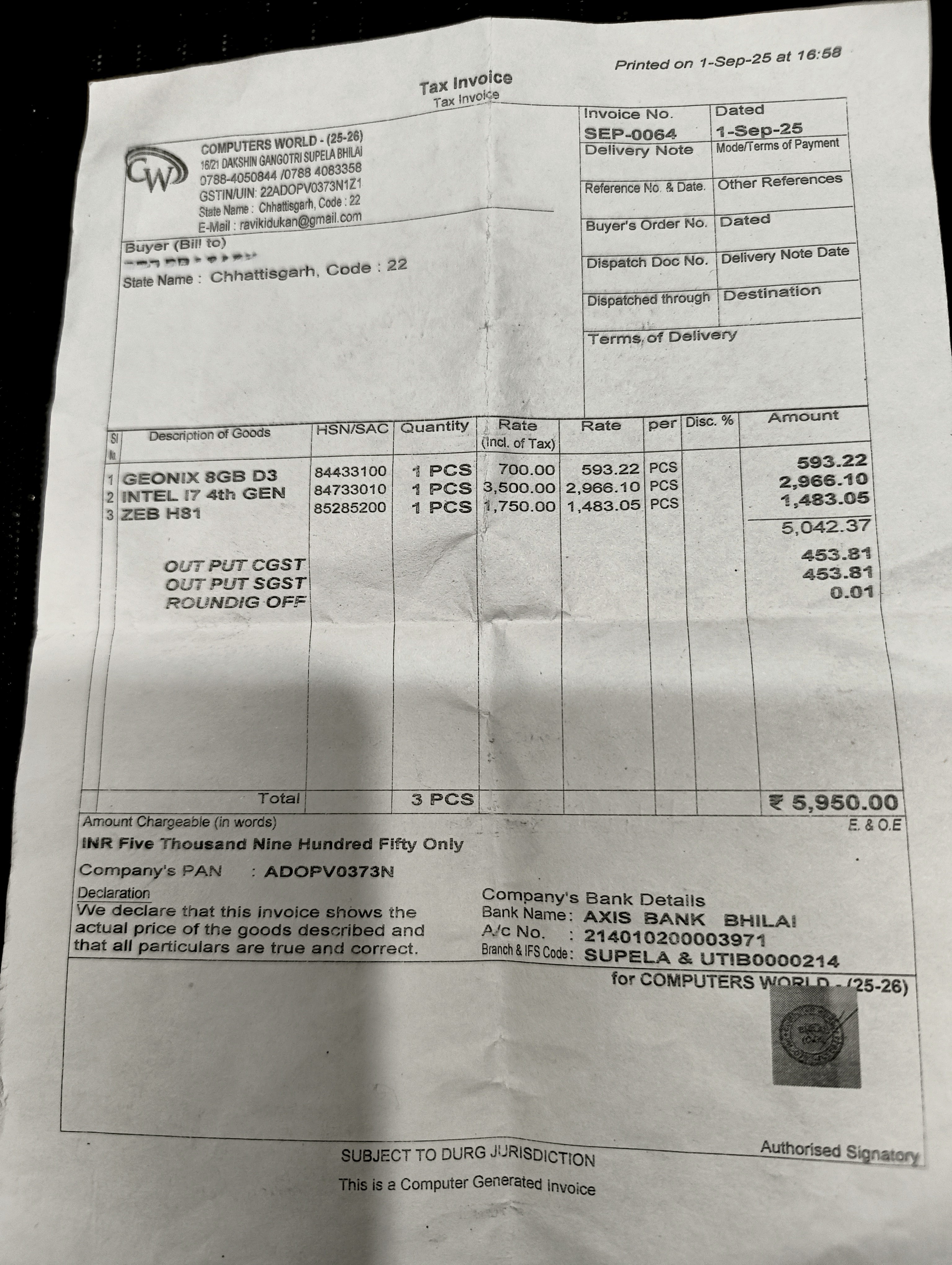 Bought this system from local store on 1 Sept 2025 as quick budget gap filler when my previous system got sacrificed to the thunder gods. Used barely for 3 weeks after which I build my new system (most of the parts procured from TE itself) and it has been lying unused since then. Shopkeeper said CPU carries 1 year warranty, MoBo(2 years) & RAM(5 years) have their respective brand warranty. Would prefer to sell processor and mobo as combo. RAM can be sold separately.