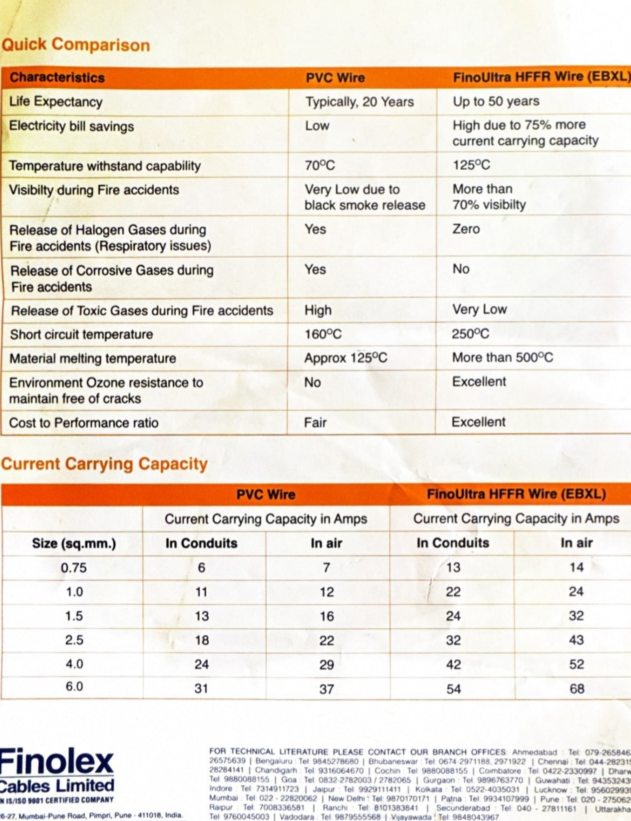 I’ve used Polycab and Finolex PVC FR grade (nor FRLSH) for wiring. The wire run is 25 meters and has a dedicated MCB.