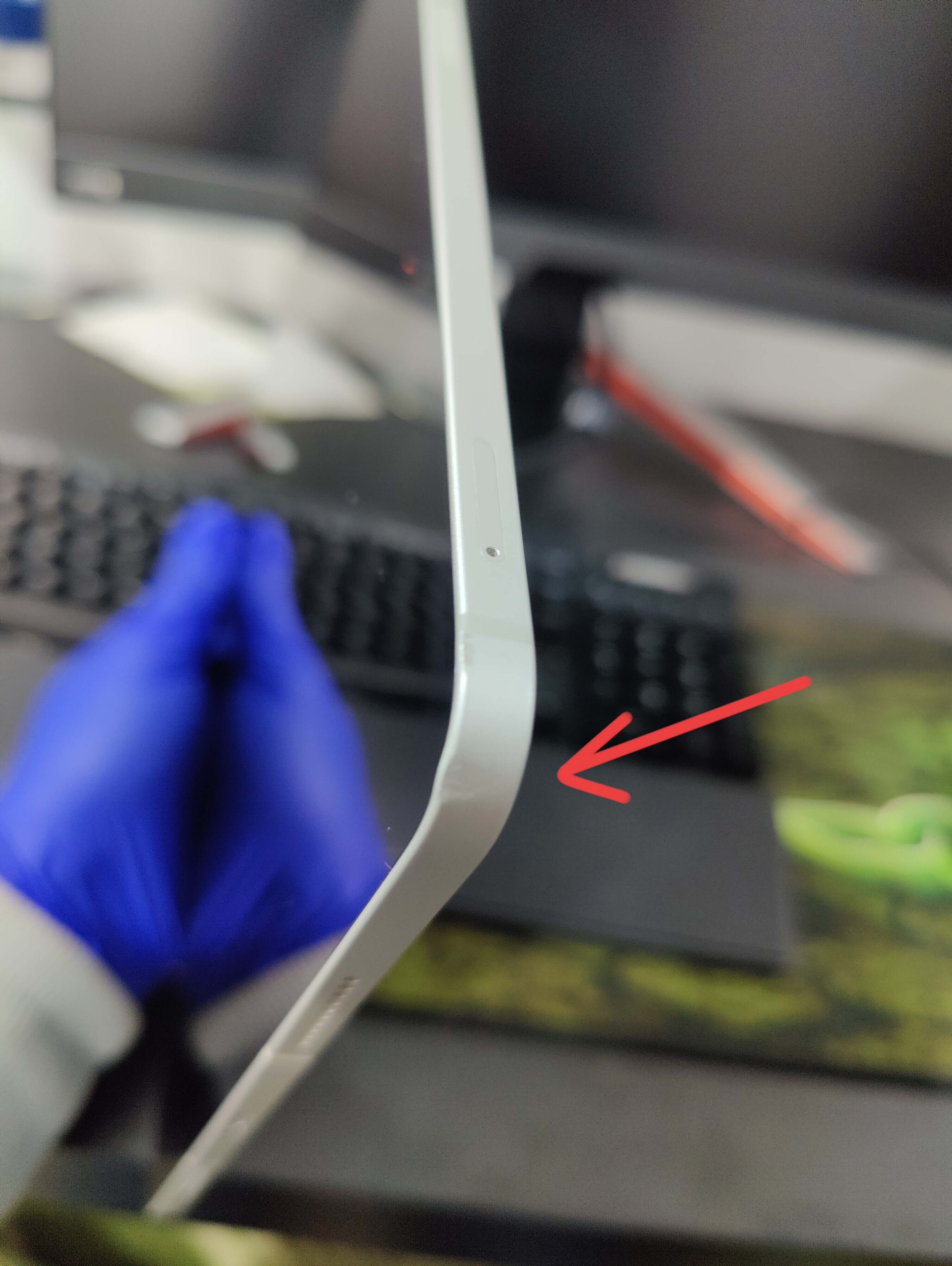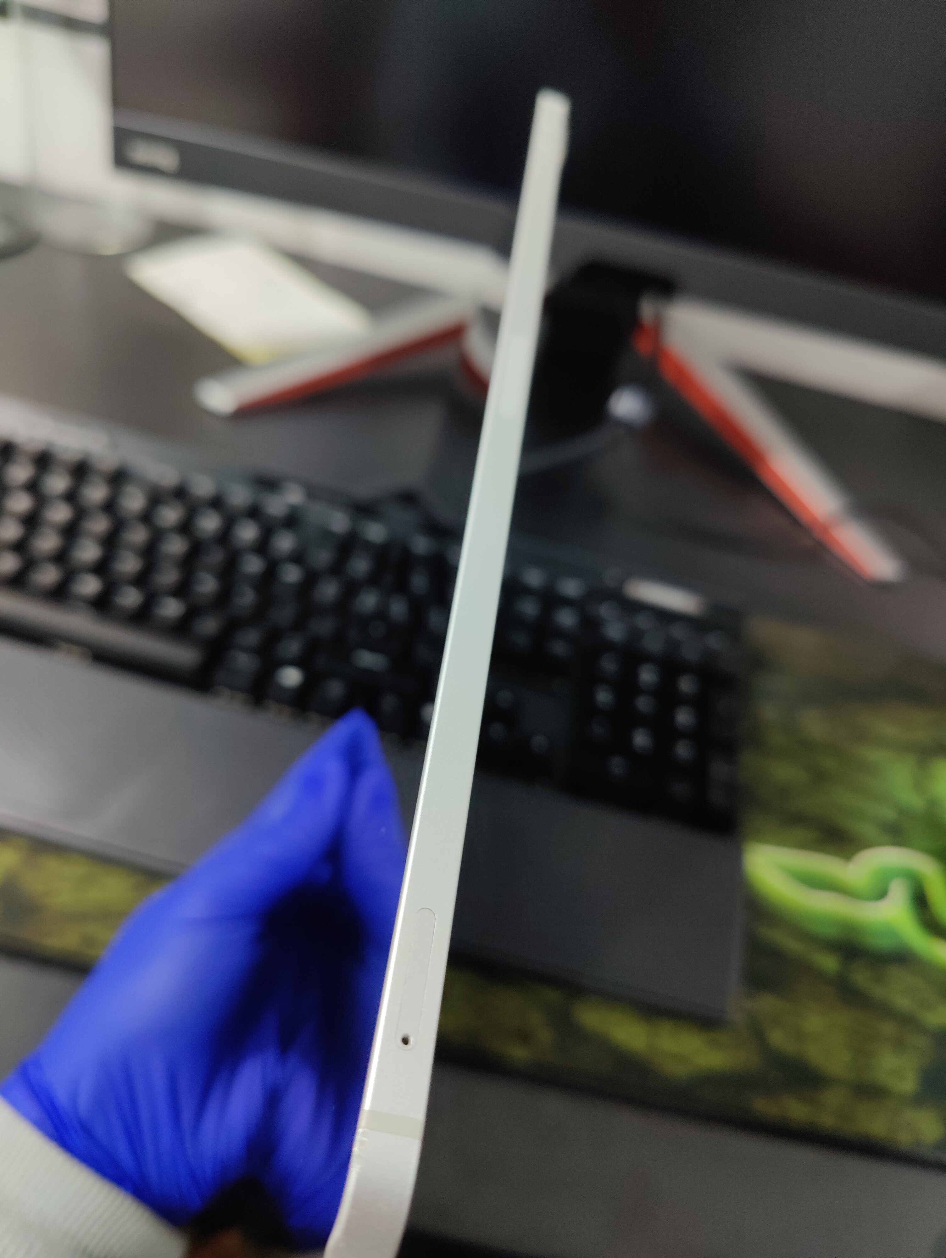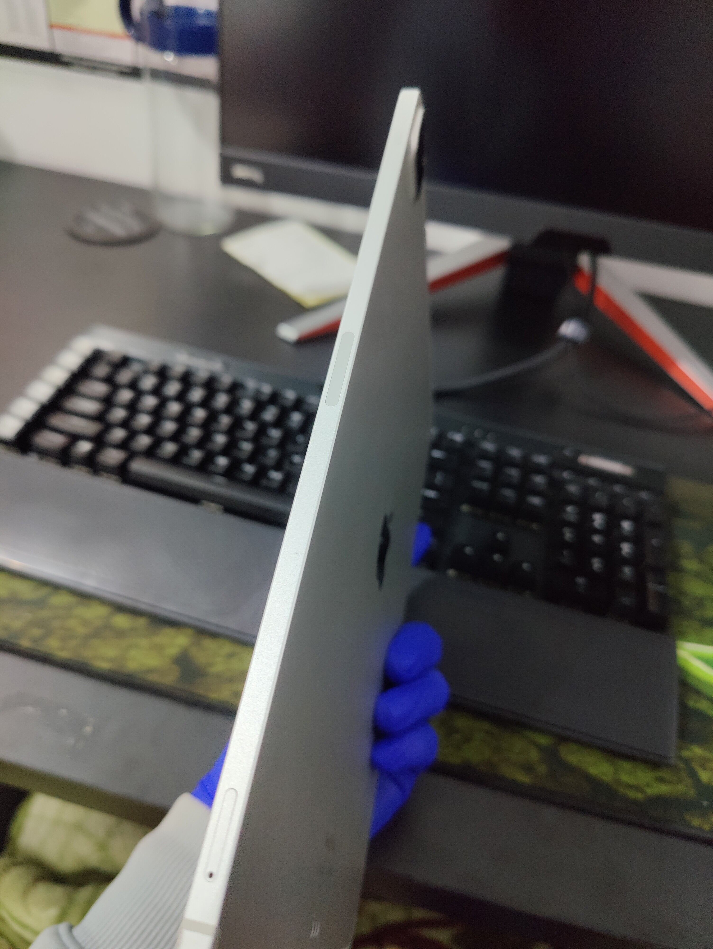 Theres a minor dent . ( Slipped down on the table while removing from magic keyboard ) The dent has no effect on display and usage in any way .