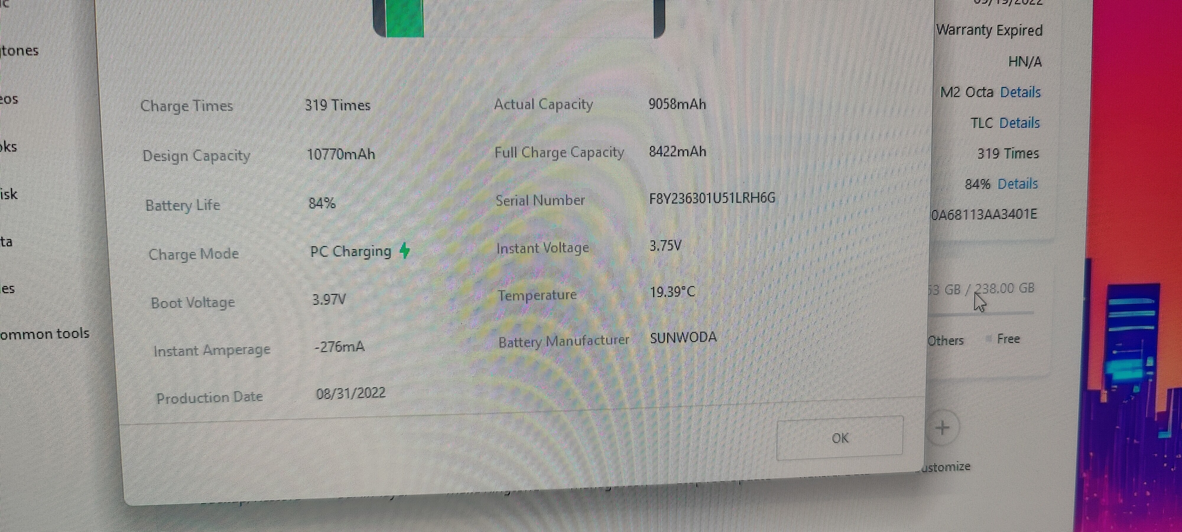 BH 84 CC 317 only ( using 3utools but I should mention with only 317 cc bh should be above 90 + maybe 3utools is a bit buggy or the reading is correct )