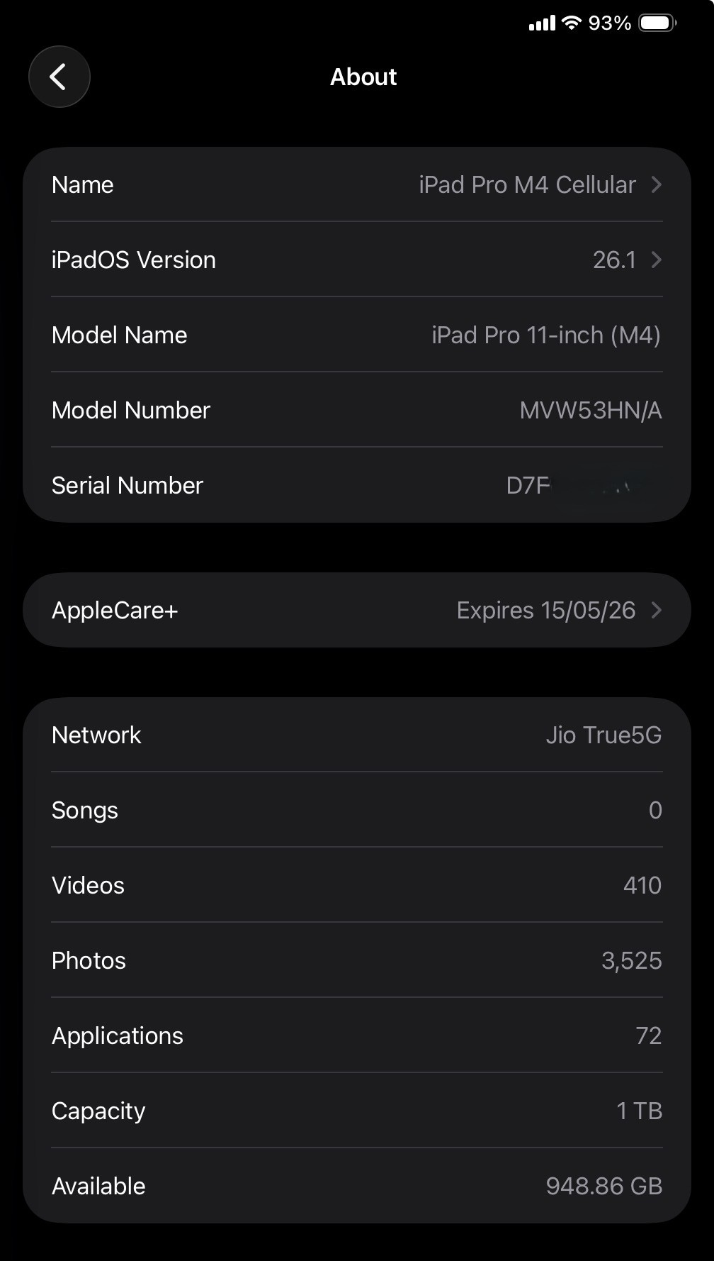 I am selling iPad Pro M4 11” 1TB with Apple Care+ (Damage protection warranty till 15-05-2026)