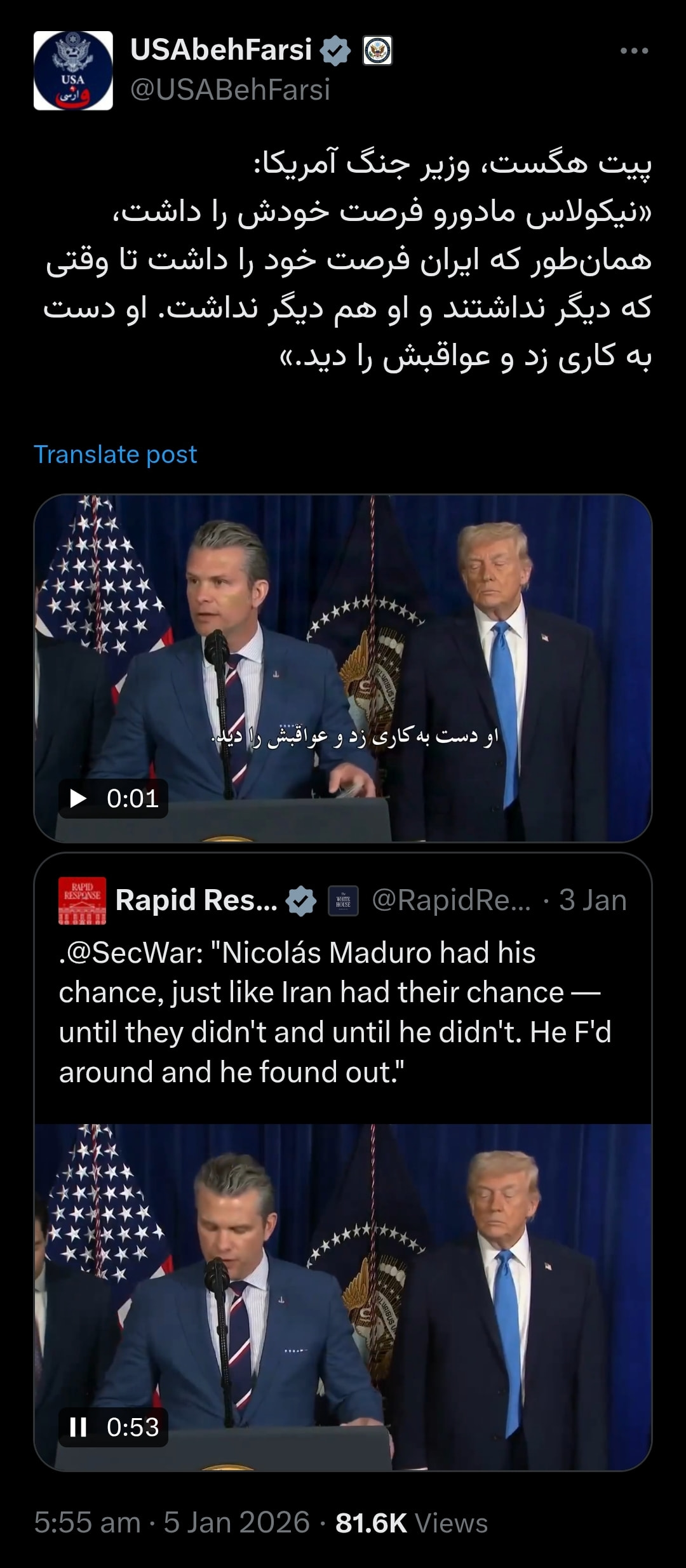 The pahlavi supporters want US intervention and applauded Israeli action in Jun. Especially that Israeli strike that took out 8 IRGC commanders in one go.