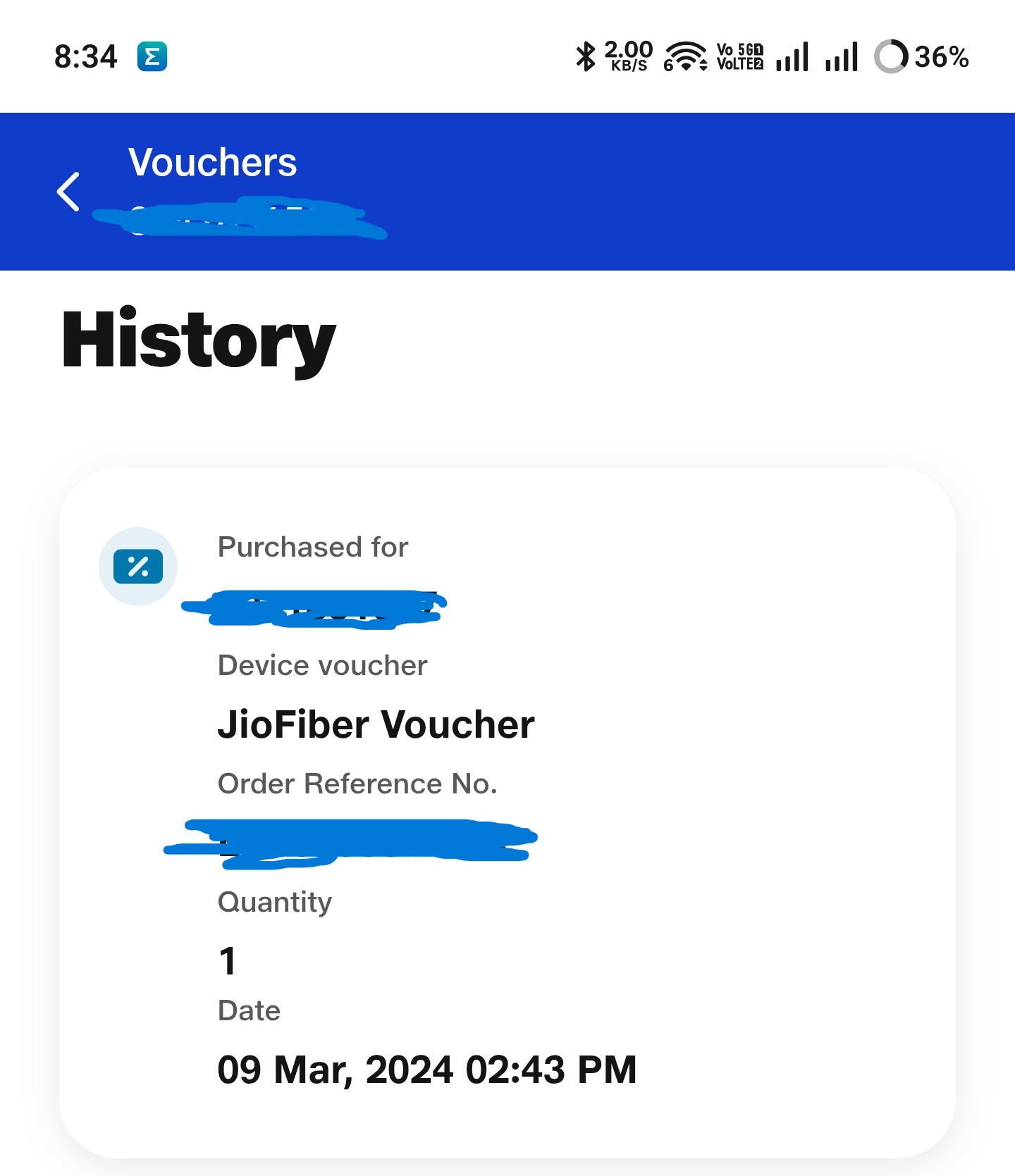 purchase was done online through my jio app…i have tried speaking but they always ask to mail