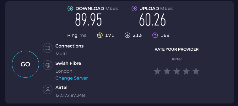 This is on Wifi using Tplink Ac 600 wireless adapter. Lan speeds may be higher and better.
