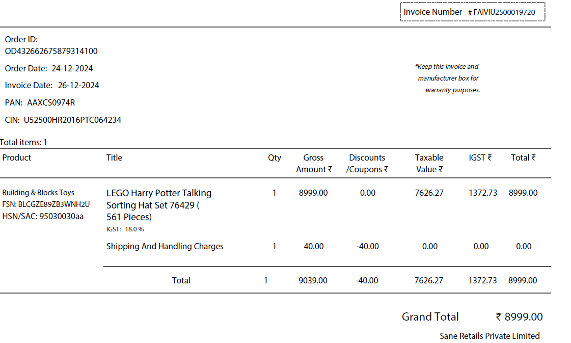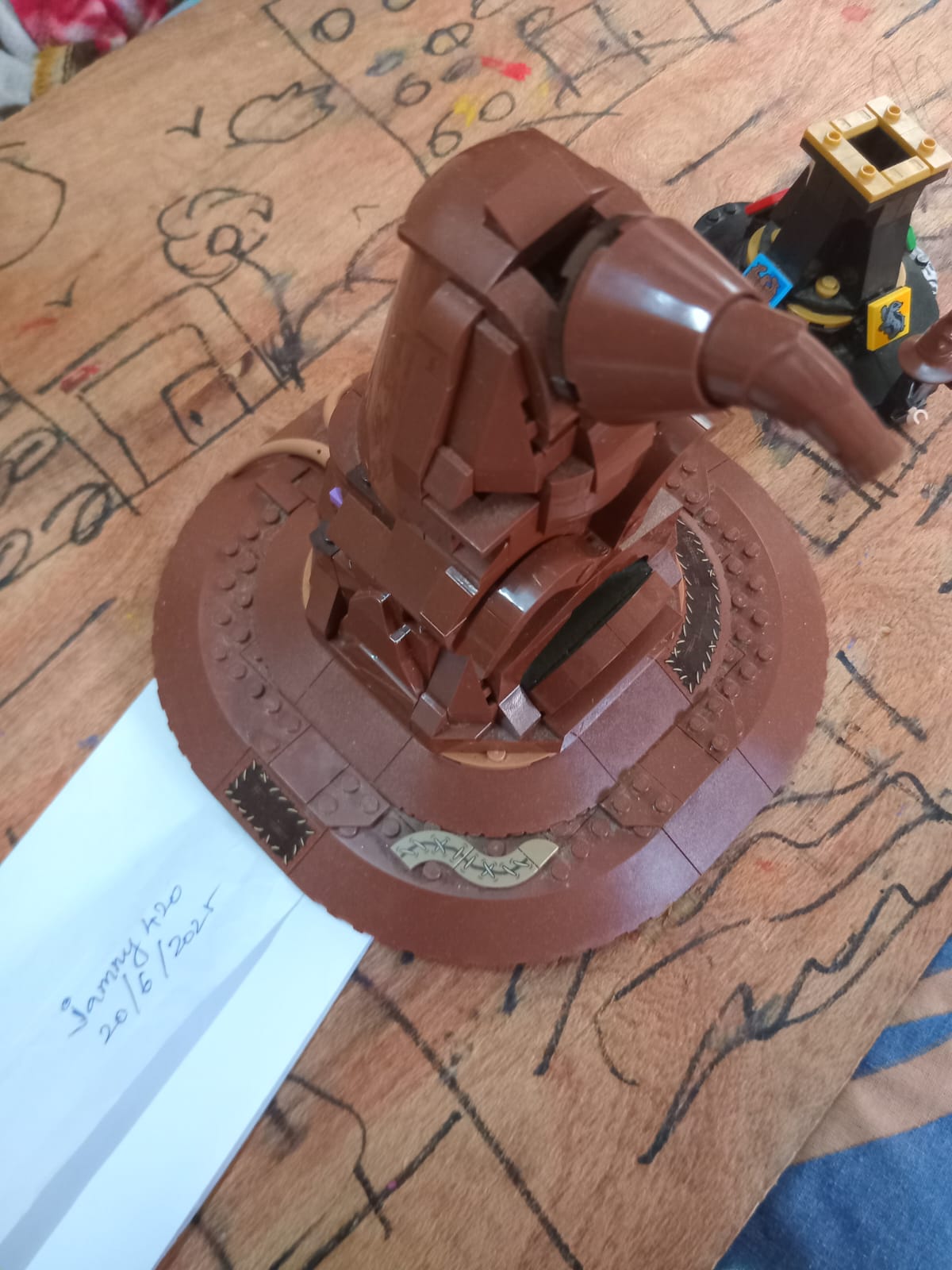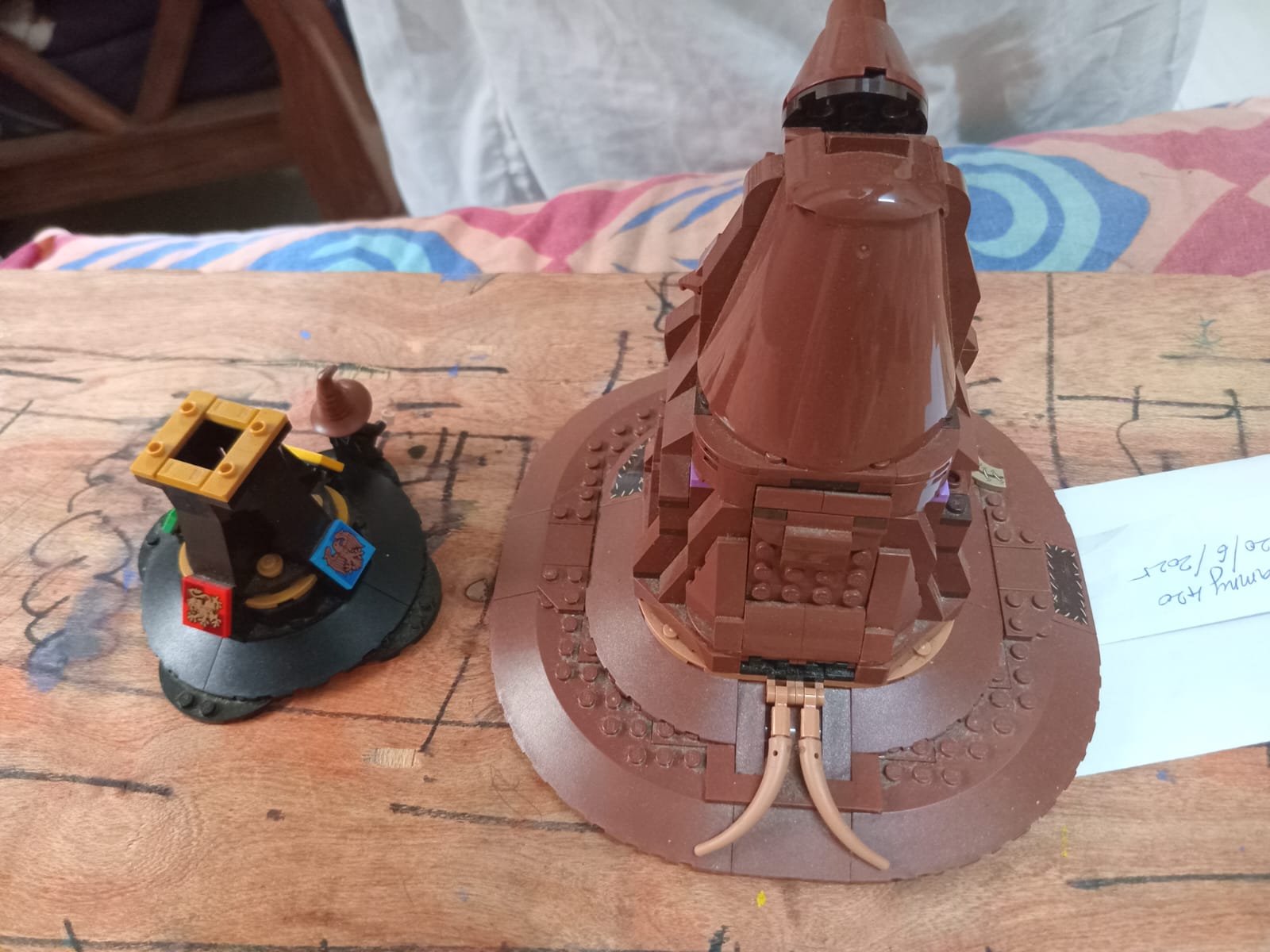 Lego Harry Potter Talking Sorting Hat - got as a gift for a kid in the family. But she is not much interested in such complex Lego. built only once. It has sufficient extra pieces. I also ordered some at no cost. I think while building it I replaced one color with another by mistake. Or not sure if they gave a different color. But all parts and functionality are fine. If extra parts are needed, you can order them for free of cost at LEGO site.