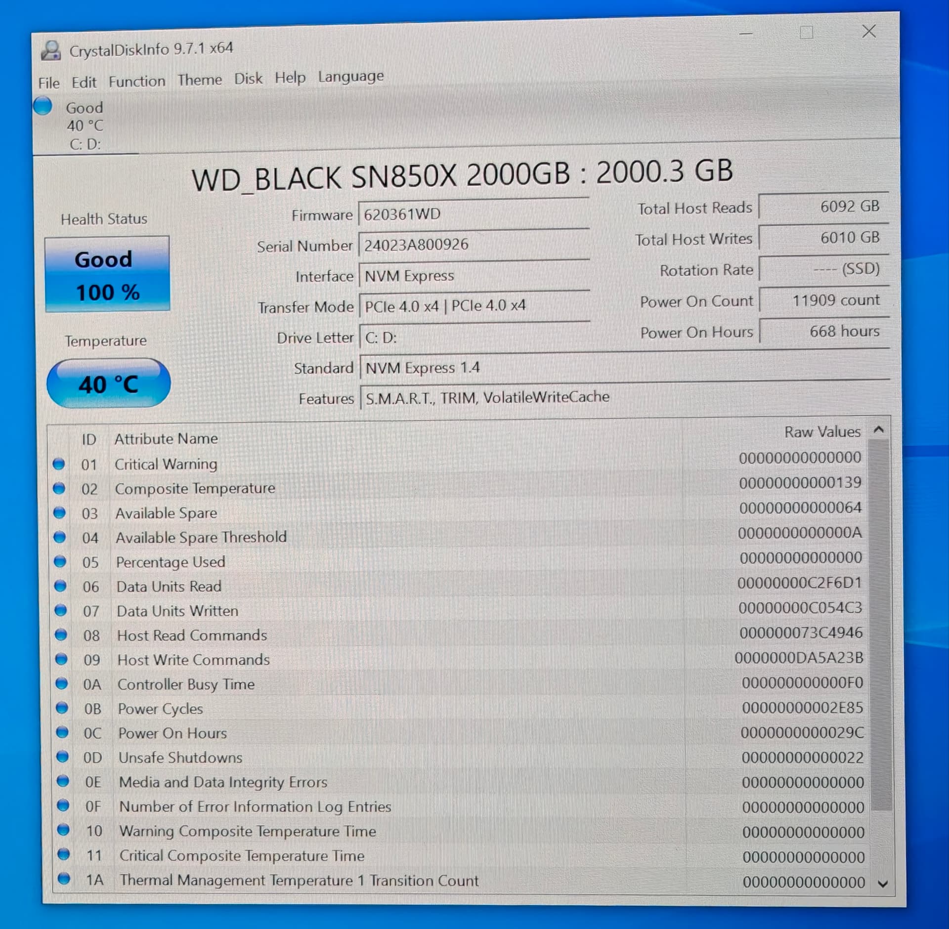 Upgrades: 1TB SSD to 2TB (Western Digital SN850X NVMe 2TB, WDS200T2X0E)