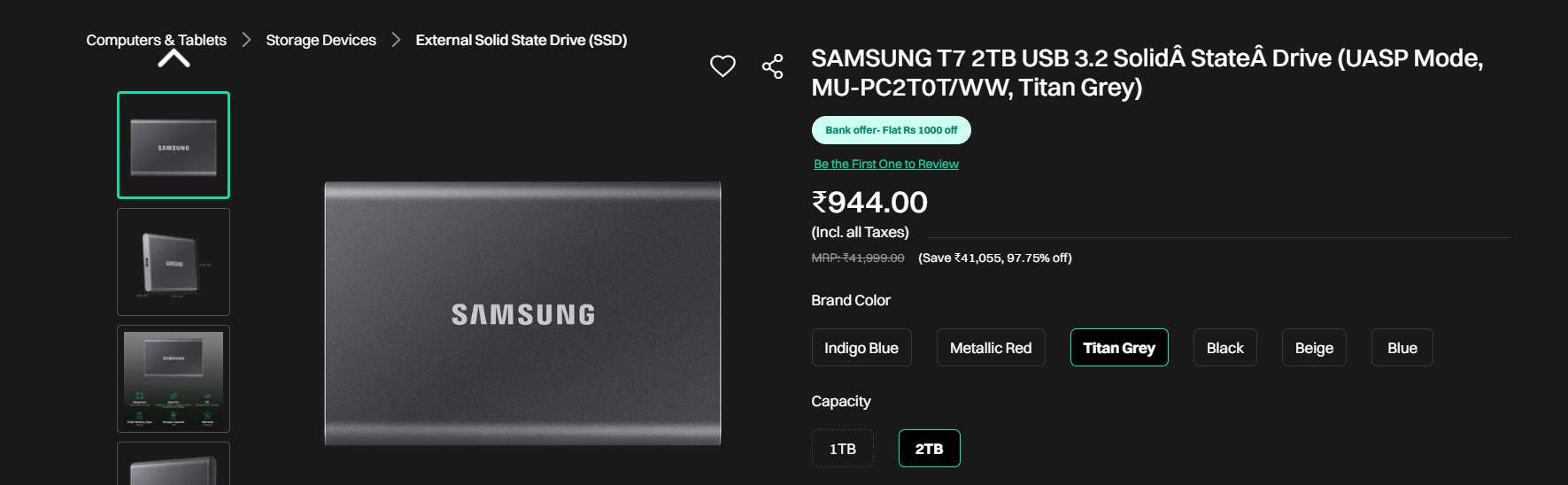 its not a fake deal, i was able to get to get to check out page but barely missed out on a samsung 500gb external ssd at 1100. Some people even managed to get a 2tb samsung external ssd at 900 and crucial 4tb external ssd at 5500. Criticize your own lack of speed.