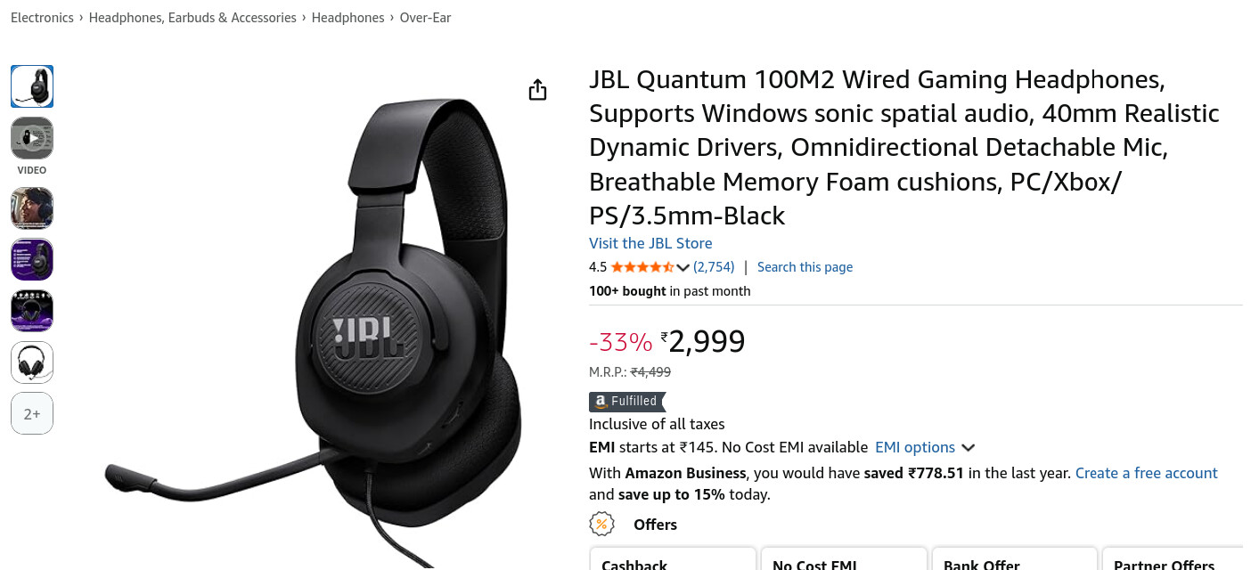 Razer V2x Blackshark will be more than sufficient for your use case then overall. You can find it easily during sales for 2k. Do not buy it for more than that. If not JBL Quantum M2. Under 3k.