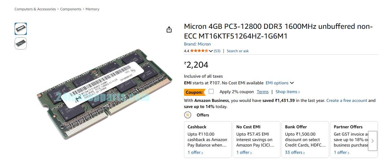 Type: DDR3L SDRAM, SODIMM (Small Outline Dual In-line Memory Module)