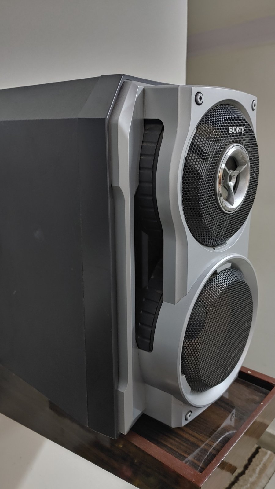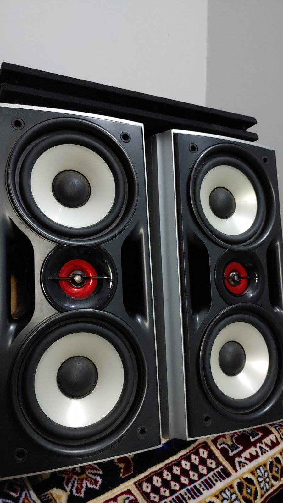 Please note I use my SONY BOOKSHELF SPEAKERS ( I call them bookshelf as they perform really well and partly coz I don’t have the machine) with this.. The ones which came with Sony MHC-Az2d music system. (edit attaching pics of them)
