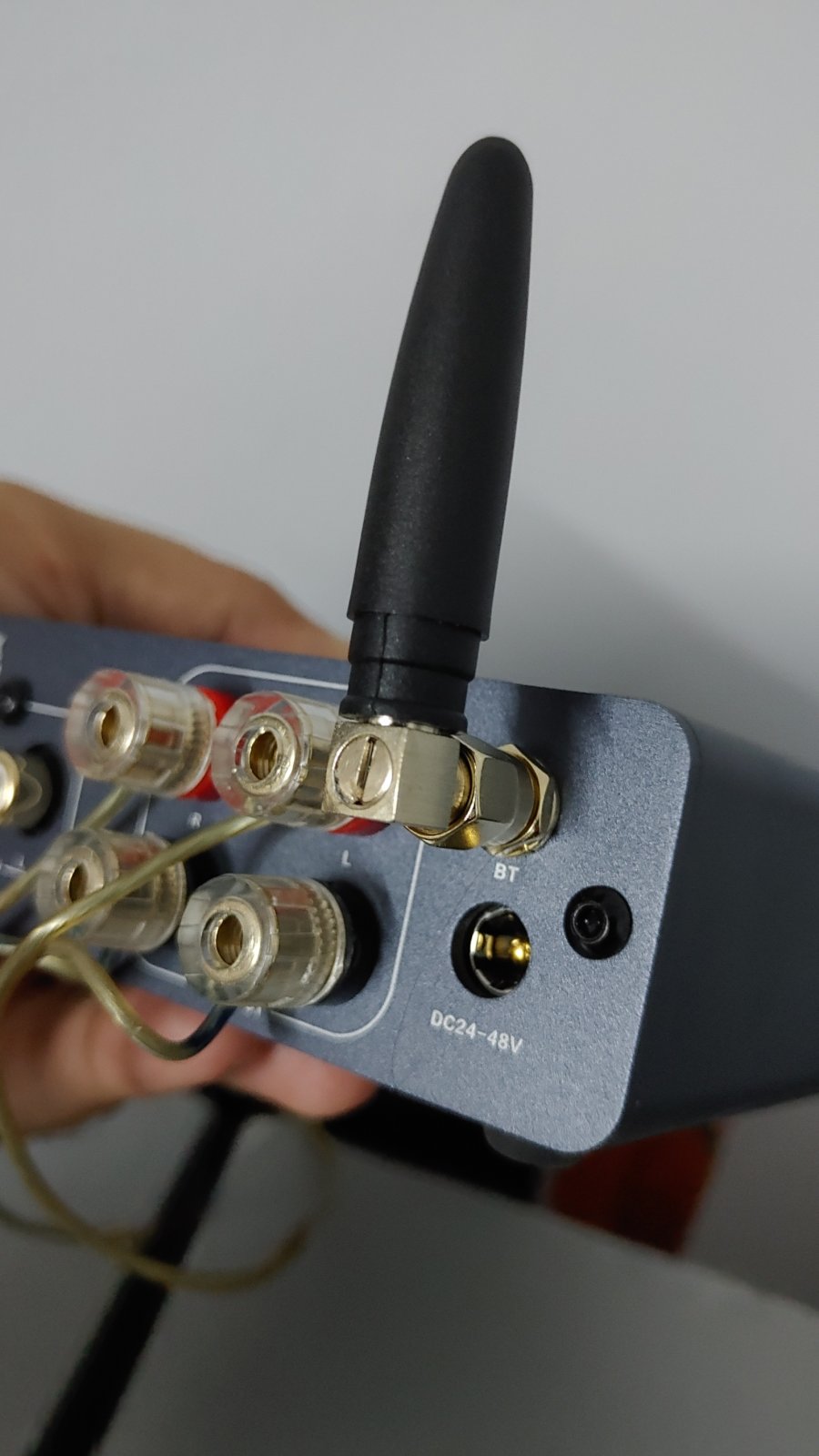 Please mind that it takes I guess smaller pinned banana connectors.. I didn’t know and purchased the full sized (longish type, 8 in total) ones which upon connecting would remain nearly 50% outside of the socket, hence had to connect bare wires with speaker out ports.. TBH I found this method of connecting wires kind of easy, no non sense type and they are connected pretty tight with the ports.