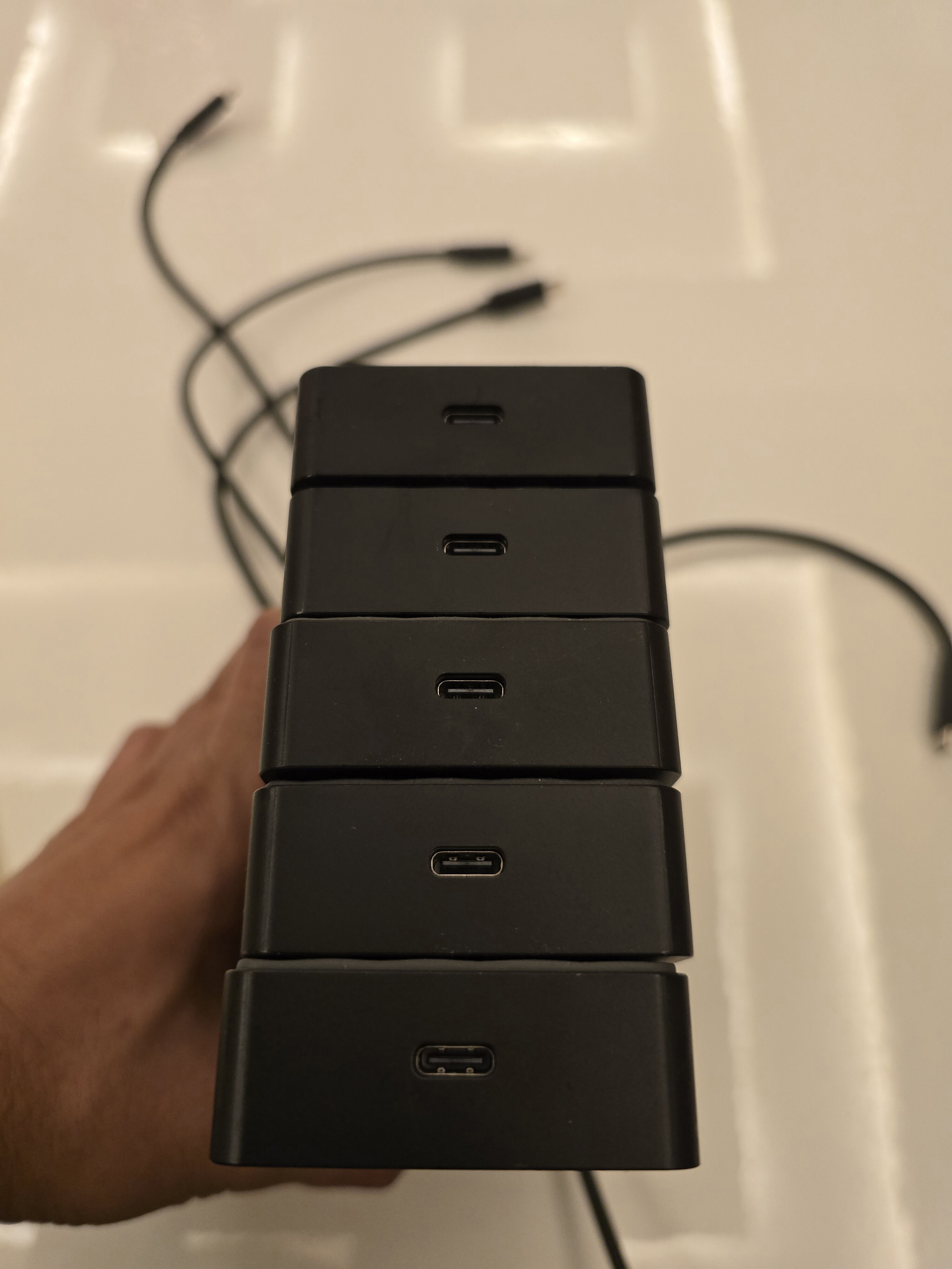 The one i got isn’t available anymore, it has 3 USBc + HDMI (macbook with 1 USBc. Other is power plug for Macbook and other USBC for data from PC + HDMI from PC) for input… and HDMI output with 4 USB ports… working fantastic for me..