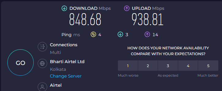 I currently use Airtrel Extreme Fiber broadband and on the 300 Mbps plan. Works fine on the router provided by them - Sercomm AOT-4221SR. Wifi speeds don’t matter to me, since my main PC runs ethernet. I plan on upgrading to the 1 Gbps plan and wanted to know if over ethernet, that router will handle a throughput of at least 80% of that speed. I can’t find any speed specifications on that router. I don’t want to go through the hassle of buying a new router and setting up bridge mode, by going back and forth with Airtel’s CS. Just want to use the one router.