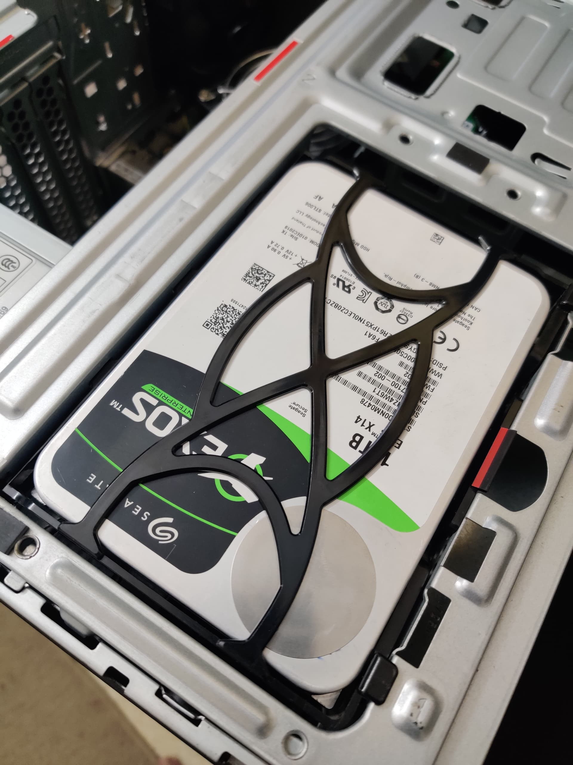 Haven’t found a way to install a second 3.5” drive try. The mid-tower version that I have accomodates only 1x 3.5” hdd natively, but there’s space for 1-2 more such drives with some jugaad. So considering 3D-printing a more robust mount. There’s good space for 3-4 2.5” SSDs though.