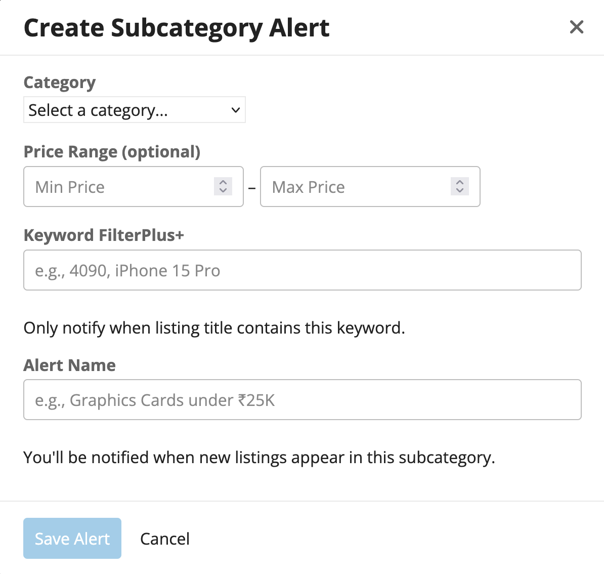 New Listing Alerts (Subcategory Alerts)