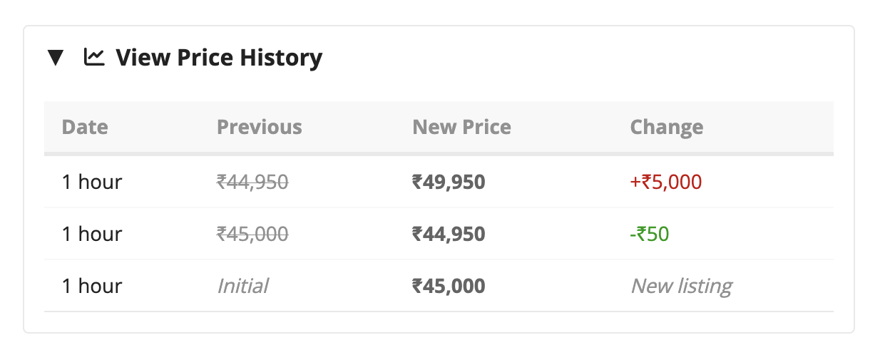 Watch any listing and you’ll get notified the moment the price drops, with the exact rupee amount saved compared to when you started watching.