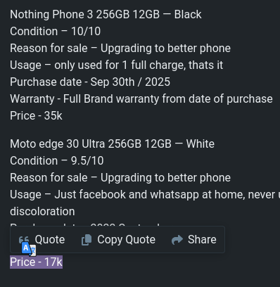 price for moto was added after subhamsingh messages the first time on the post, i remember getting timed out once for commenting 2-3 times for posting update so i didnt comment and just edit itself.