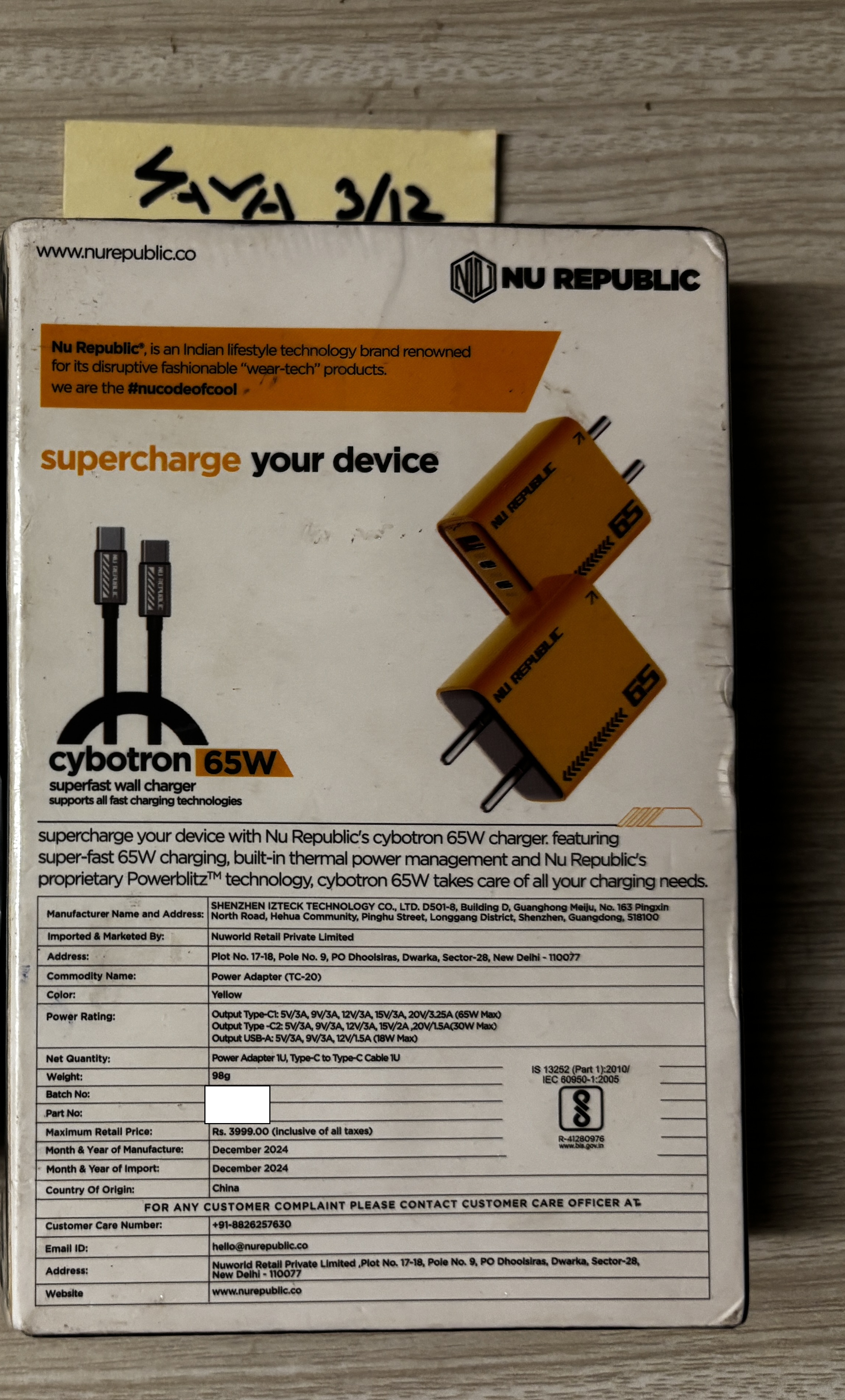 Product Link: Cybotron 65W GaN Superfast Wall Charger