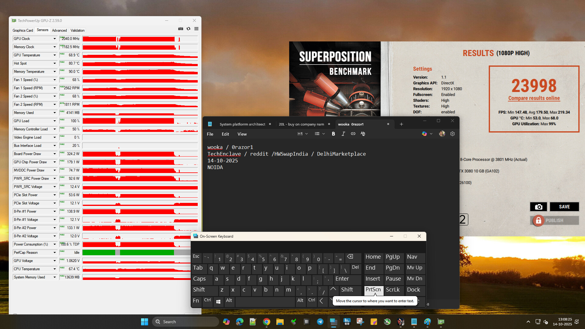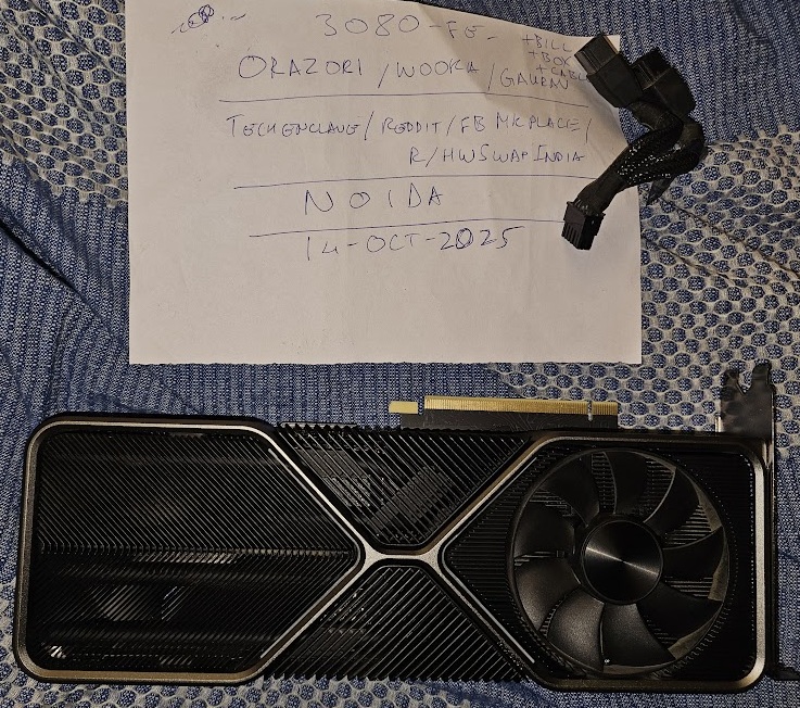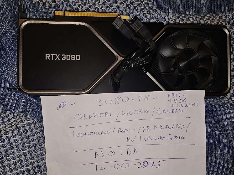 Mint condition 3080 FE sparingly used, beast of a card. Can be undervolted to give about 90% performance at 220W. You can also OC it to almost 3090 levels if you’d like. It’s been used for a few hours a month, at best.