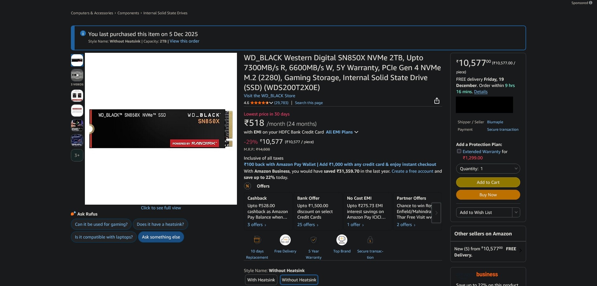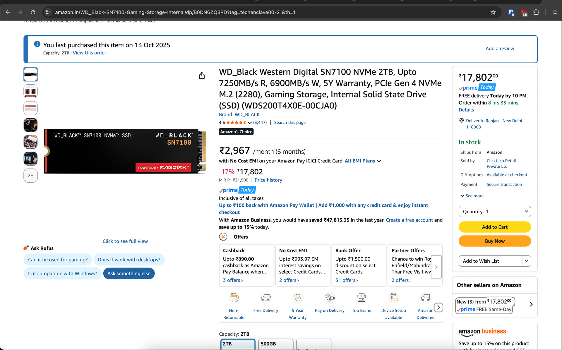 Last week got a 2TB SN850X for 10.5K.