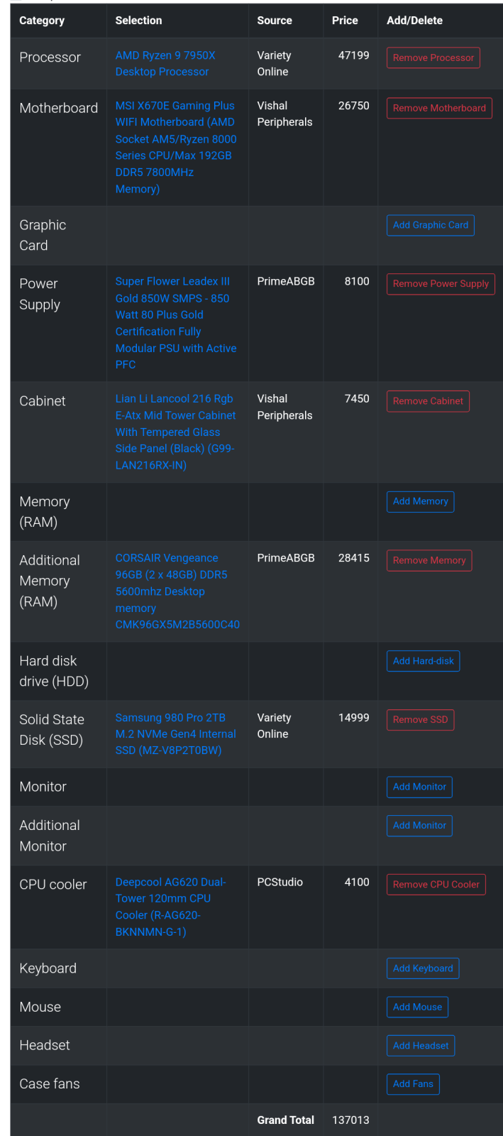 [*]Is this going to be your final configuration or you would be adding/upgrading a component in near future. If yes then please mention when and which component