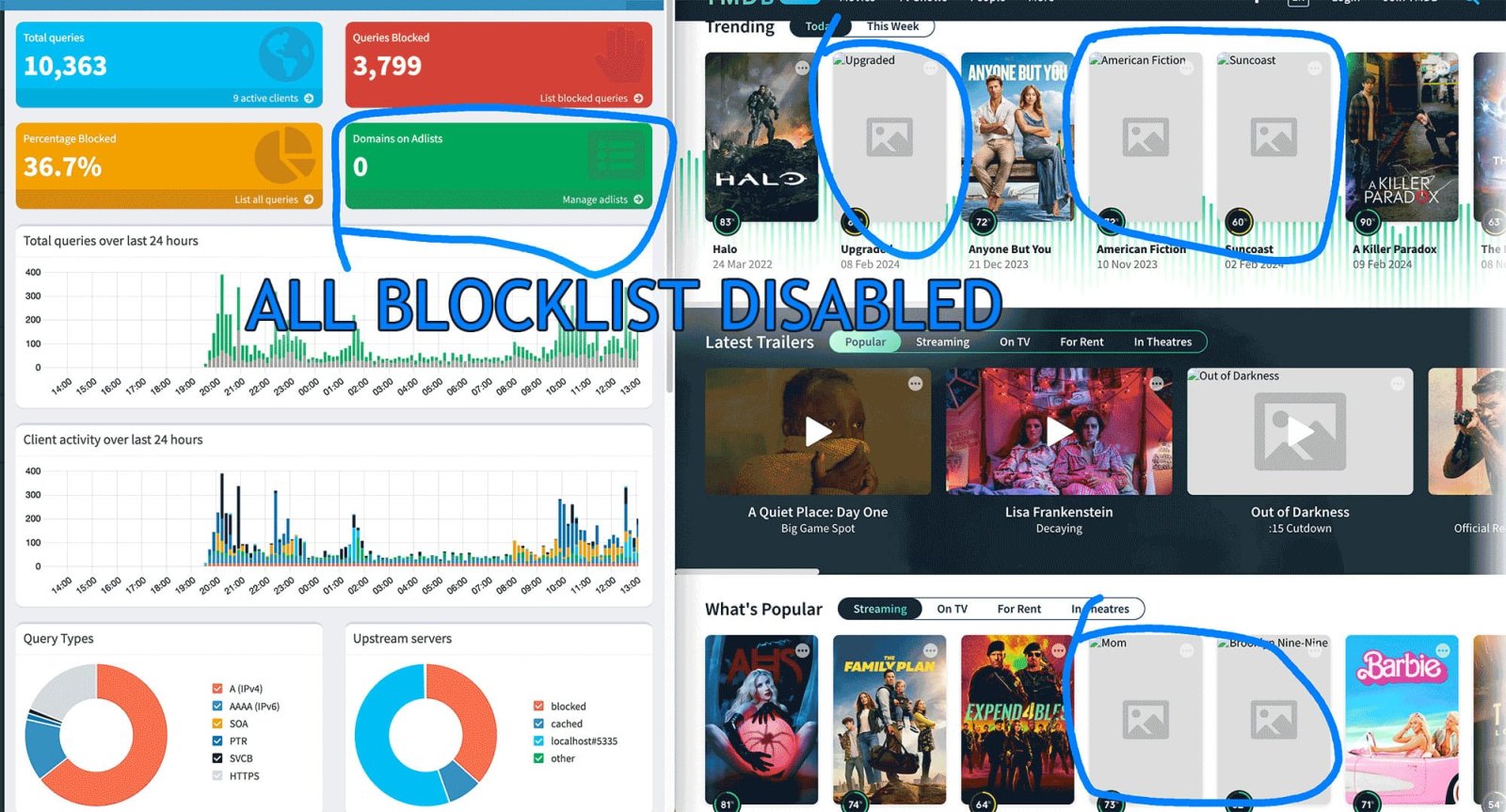in nutshell, regardless my configuration if im using pihole dns it is breaking TMDB, if i change DNS to any public like 9.9.9.11 or 1.1.1.1, there is no issues with the site.