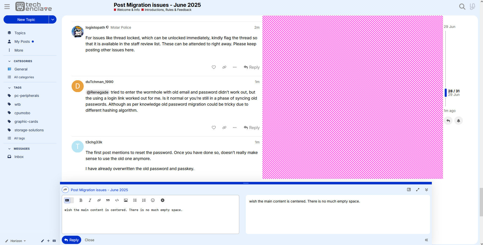 For issues like thread locked, which can be unlocked immediately, kindly flag the thread so that it is available in the staff review list. These can be attended to right away. Please keep posting other issues here.