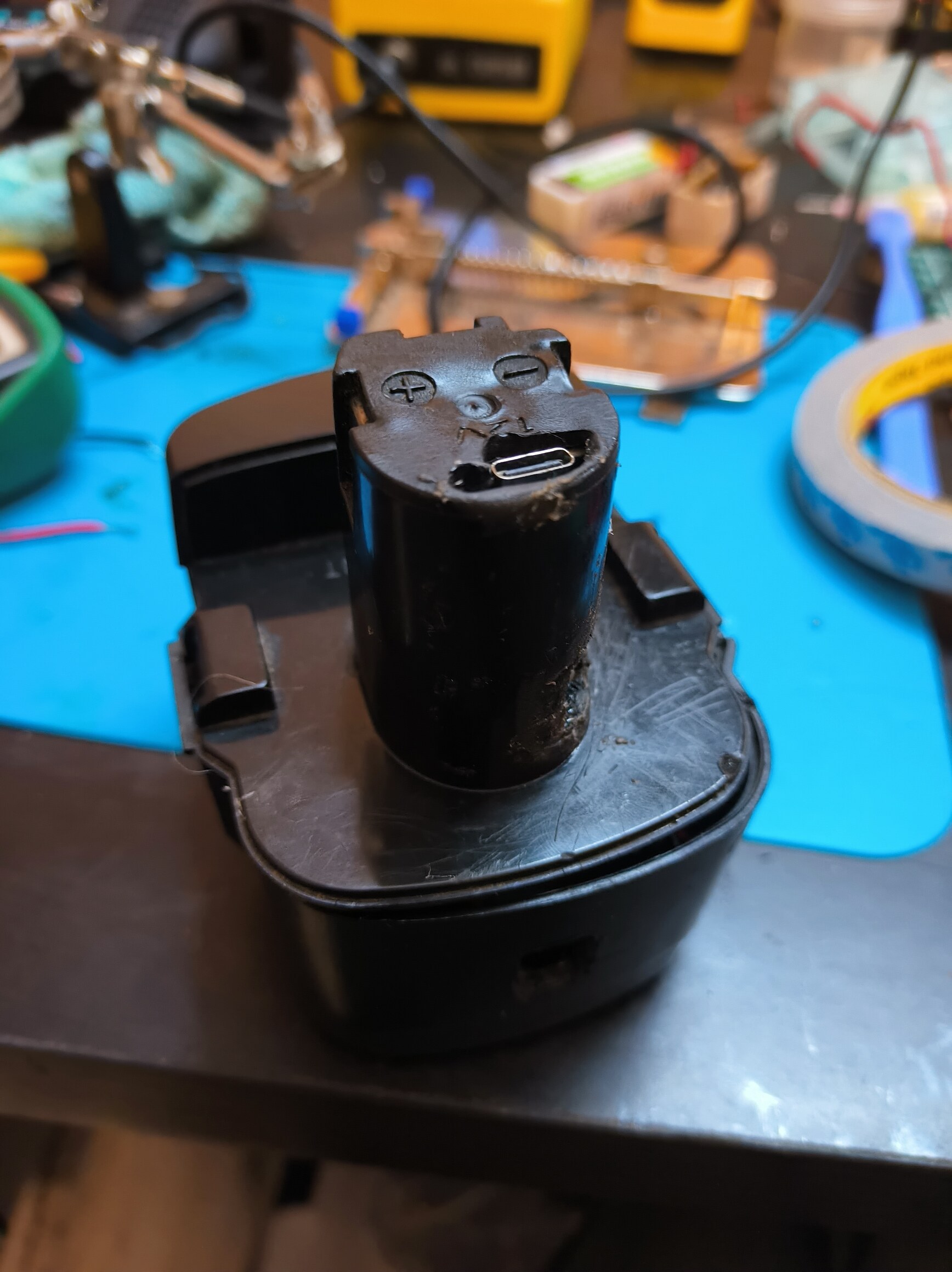 I got this cheapo black and decker cordless drill set long ago and the battery+charger failed rather quick, the battery originally was NiCd based (black and decker loves environment and your health ) and I modded it to lithium cells (some random 18650s) they lasted more than the original cells but something or the other kept failing every now and then, I have remade the whole thing a couple of times now but the shell remained same so it has seen some good amount of abuse. This is the latest iteration with 4x 21700 4500Mah DMEGC cells in 4S config + a BMS + a type c to 4 s charger module.