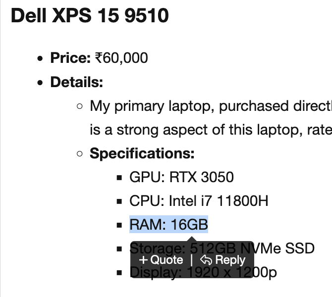 My primary laptop, purchased directly from Dell USA about two years ago for $1400~ (₹1,20,000). This machine still has 2+ years of solid performance left. Recently upgraded to a fresh 86Whr extended battery. Repairability is a strong aspect of this laptop, rated 9/10 on iFixit.