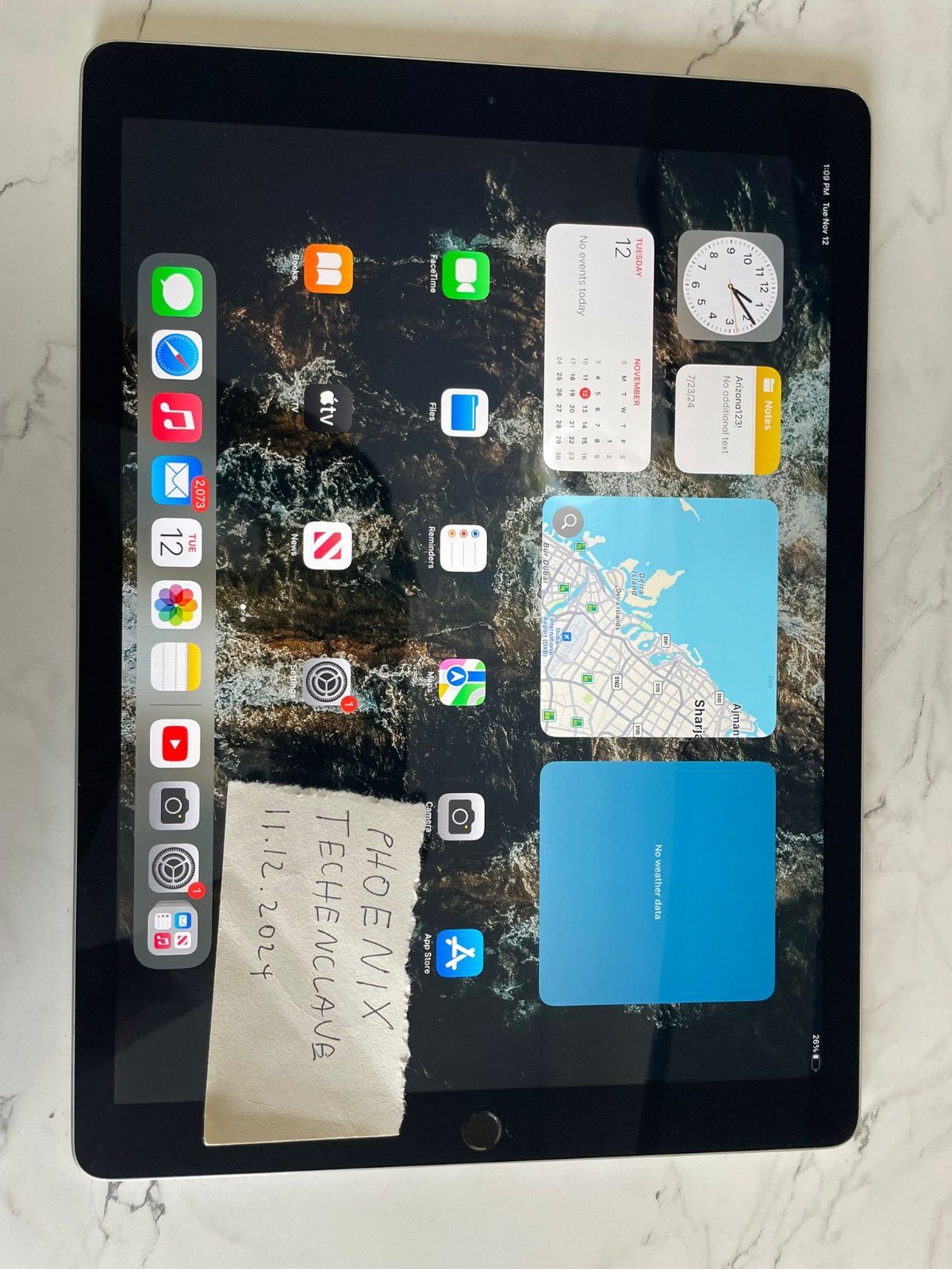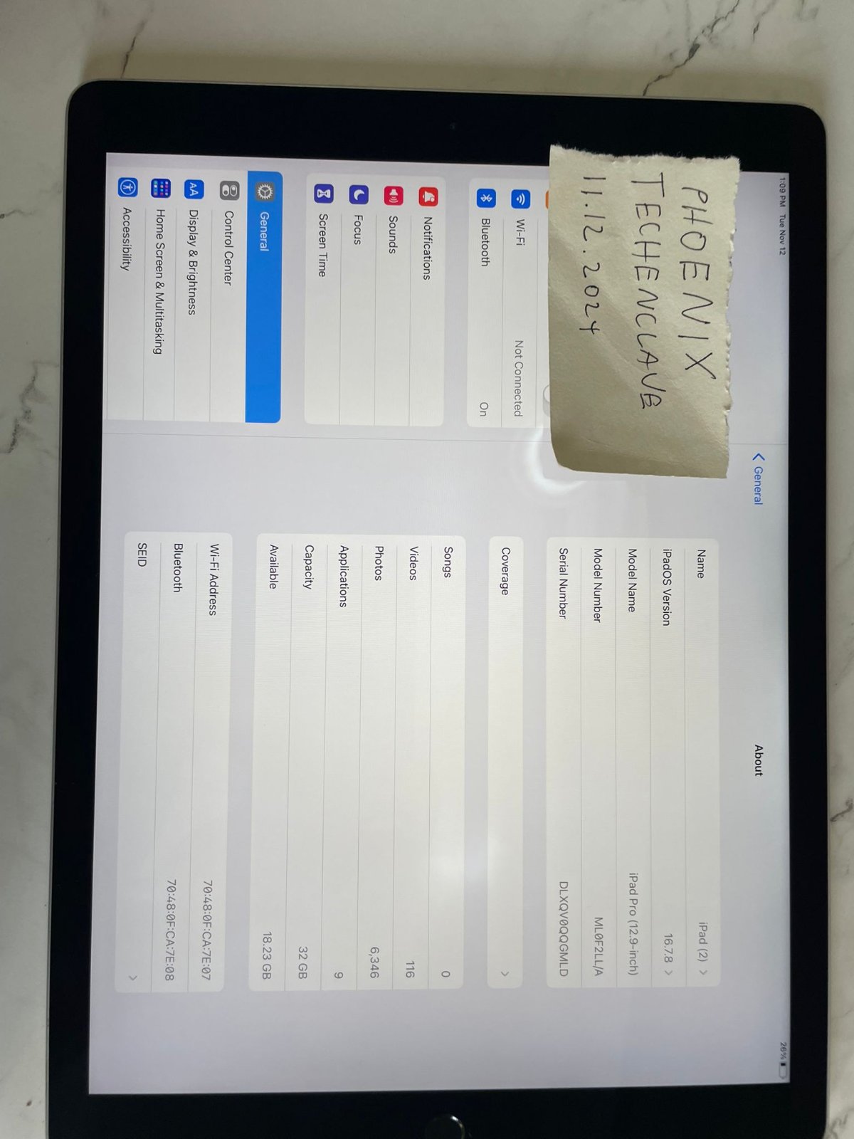 This is the first-generation iPad Pro, now about 9 years old. iOS updates have officially stopped as of this year.