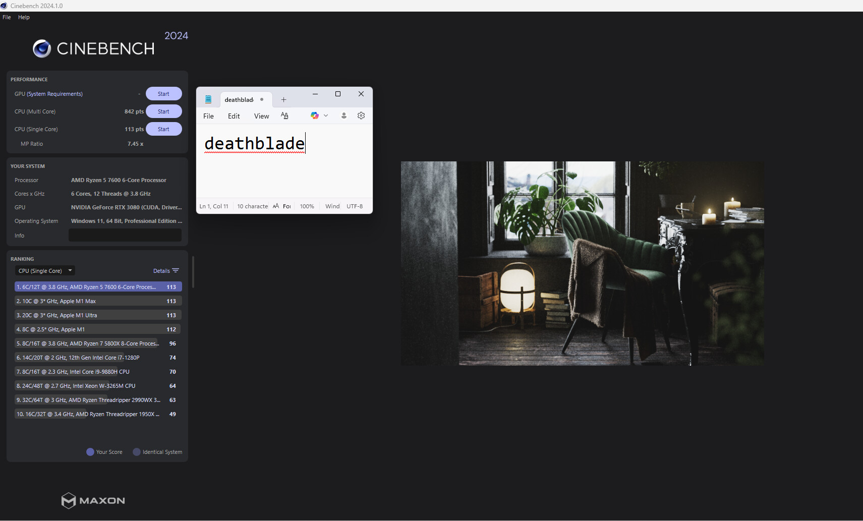 CPU-Z and Cinebench benchmark screenshots are attached.
