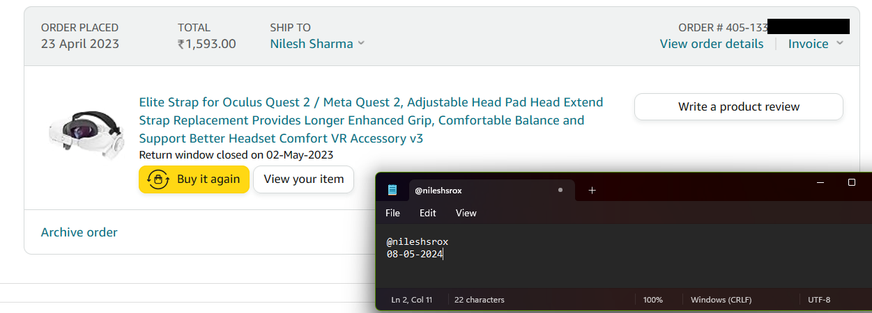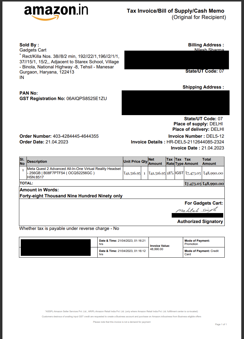 I am including the invoice for Quest 2 but not the three accessories, if anyone is interested you can DM me for those.