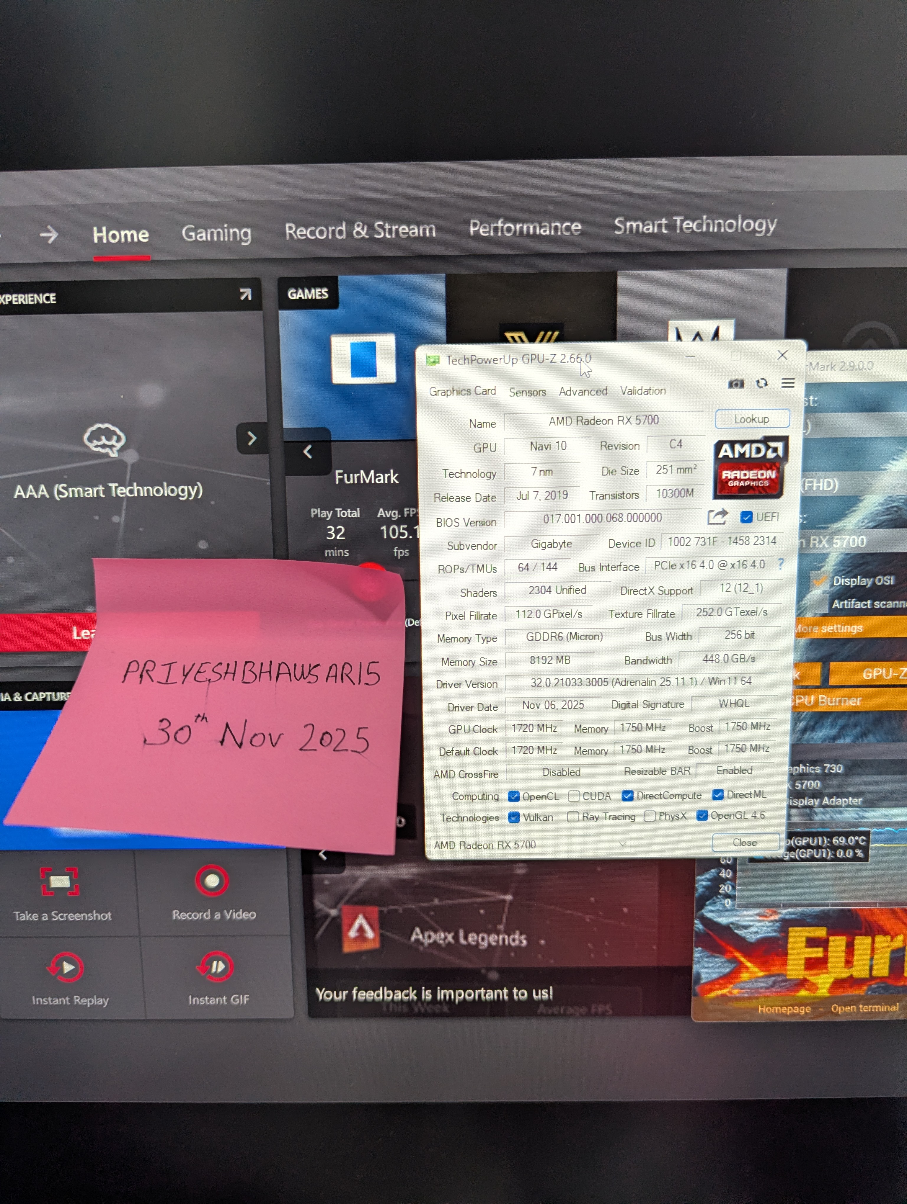 A perfectly working Radeon RX 5700 GAMING OC, i used it for around a year bought it locally from a facebook marketplace listing.