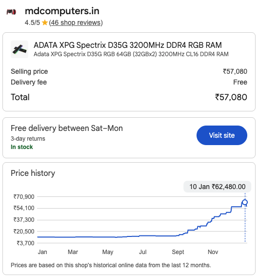 I bought my T-Create Expert 32GB(16GBx2) 6000Mhz CL30 kit for 9.5k in March, 2025 and now it too is going up and up…