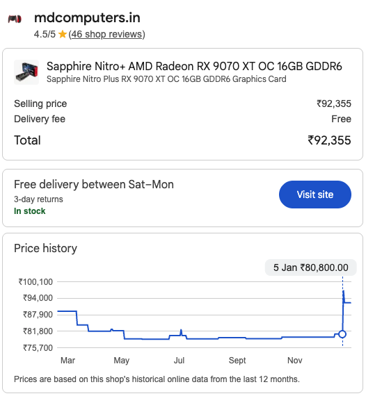 I bought my Sapphire Pulse RX9060XT 16GB for 38k in July, 2025 and now its going up and up…