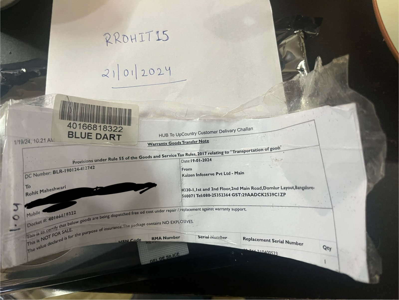 graphic card shipped via dtdc shipment and tracking details shared to buyer