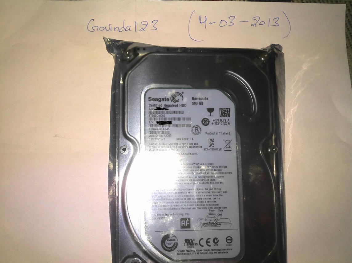 Product Name, Manufacturers code & URL: Seagate 500GB HDD (ST500DM002)****Seagate Barracuda 500 GB Desktop Internal Hard Drive (ST500DM002) - Seagate: Flipkart.com