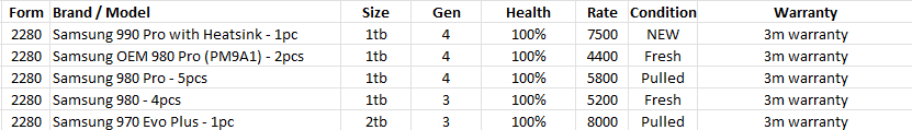 Product Name - Samsung M.2 NVME SSDs (970 evo plus, 980, 980 pro, 990 pro)