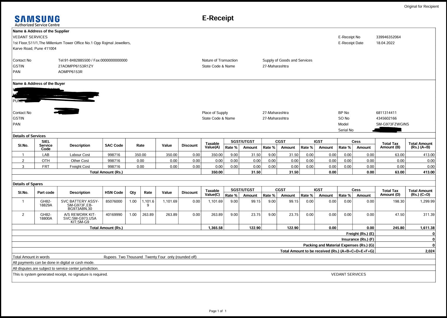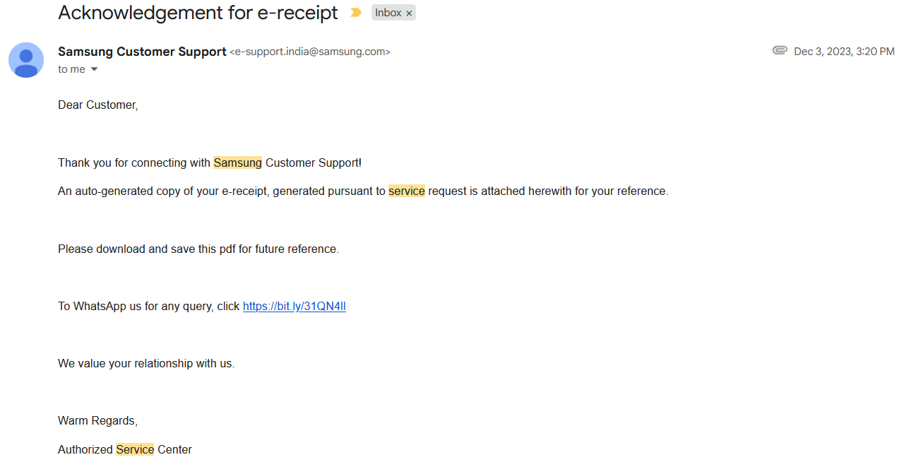And its not a local chindi bill . It came to my email from official Samsung India email