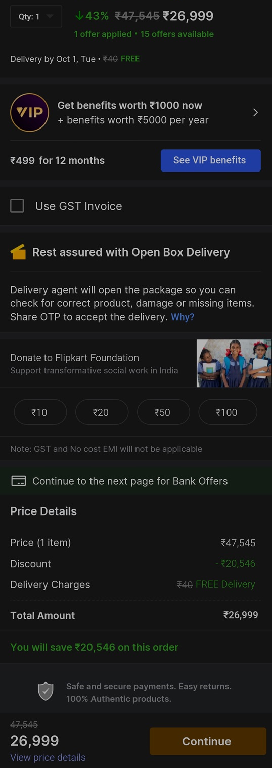 No product on fk shows that unless product is added to the cart & then proceed to the payment page at which point a msg should show “rest assured with open box delivery”.