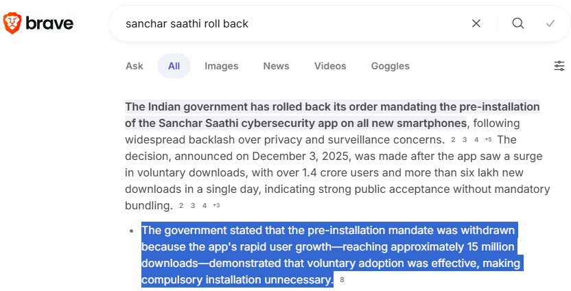 from reddit post, this guy thinks sanchar sathi was rolled back because of backlash but