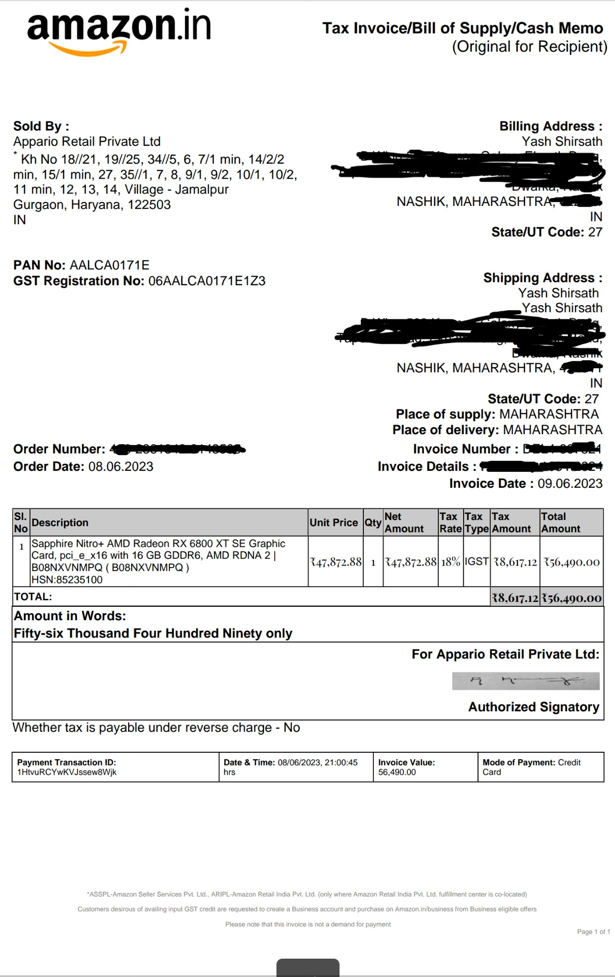 Date of Purchase : 08/06/2023 Invoice available bought from Amazon