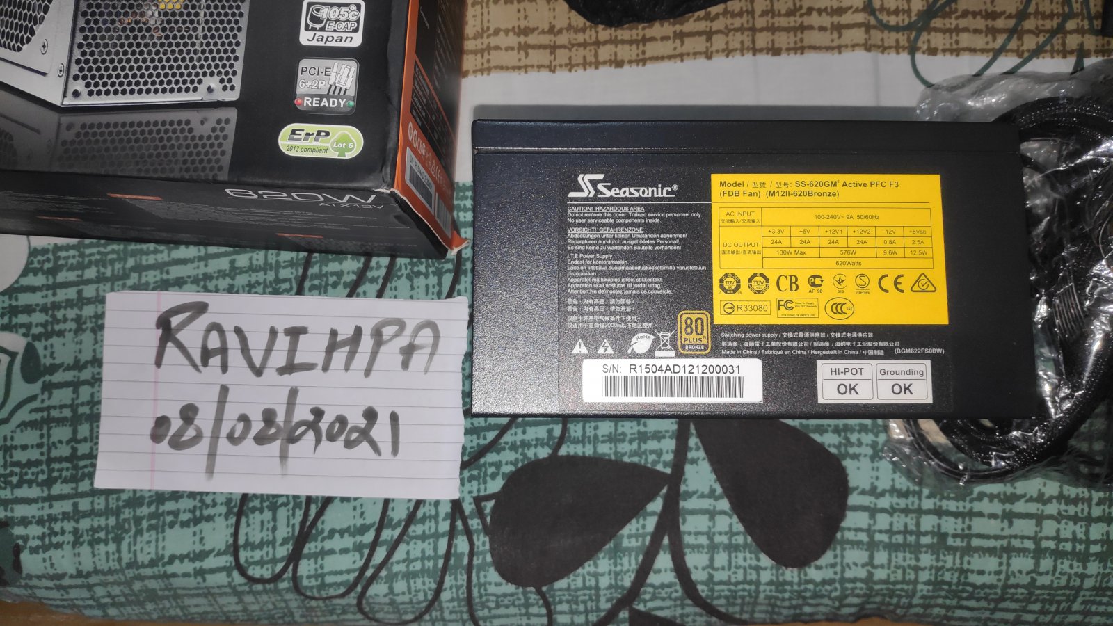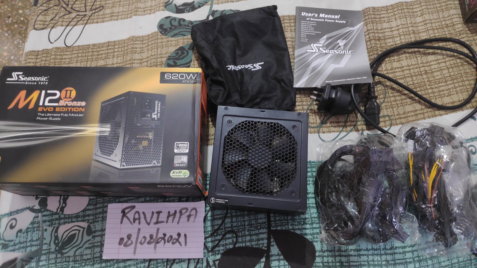 For sale here is my 5-year-old PSU - Seasonic 620 Watts M12II EVO Edition PSU (Power Supply). It’s in good condition. Working great with my 5600x and 2070 Super on full gaming load. I bought this somewhere in 2016 (don’t remember exactly) when I upgraded to a GTX970. There is no remaining warranty, and I’m not able to find the invoice. It comes with all the accessories that came with it, and I also have the original box. Since there is no warranty, I would be happy to provide you with 3 days of testing warranty. Please note, since it’s a heavy item, shipping will be borne by the buyer.