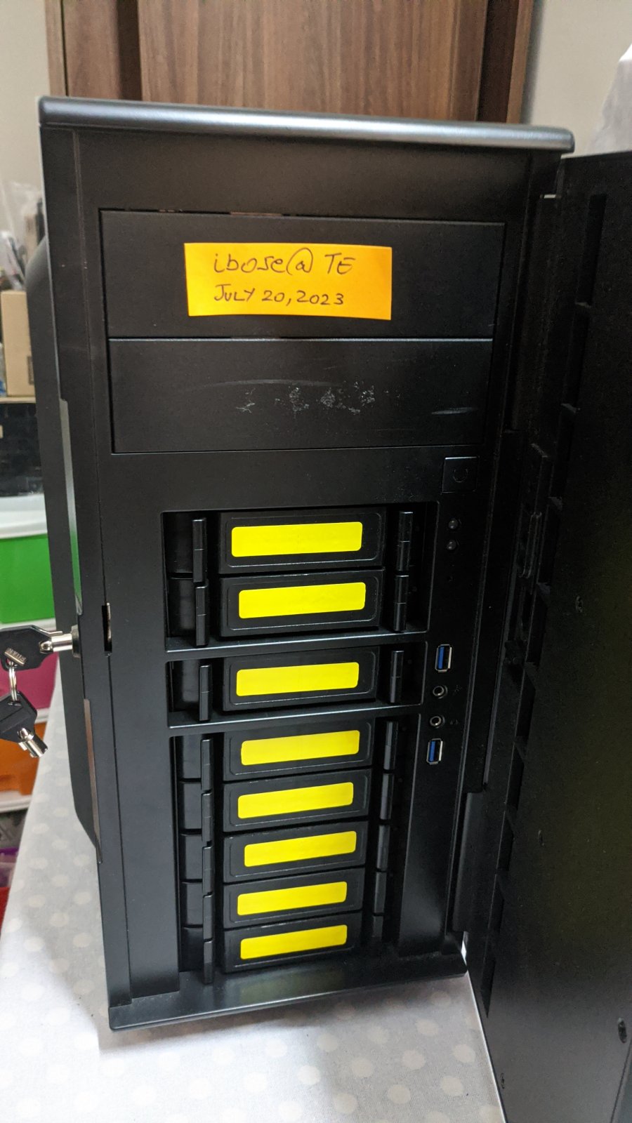 I was using this for my NAS but moved to Synology. It has some dents and scratches on one side and one of the PCIe slot covers was modded for a card. There was an issue few months back with one of the hot swap hard disks not getting detected but that has been resolved. Functionally it works perfectly fine. No accessories except for the front door keys. No original box, invoice and warranty. This is local pickup only and I am looking for a quick sale hence priced it accordingly. A 4 x 2.5 inch HDD/SSD adapter is included for free already attached to one of the 5.25 inch bays. I would suggest prospective buyers to read many of the reviews of the case and all the questions would be answered.