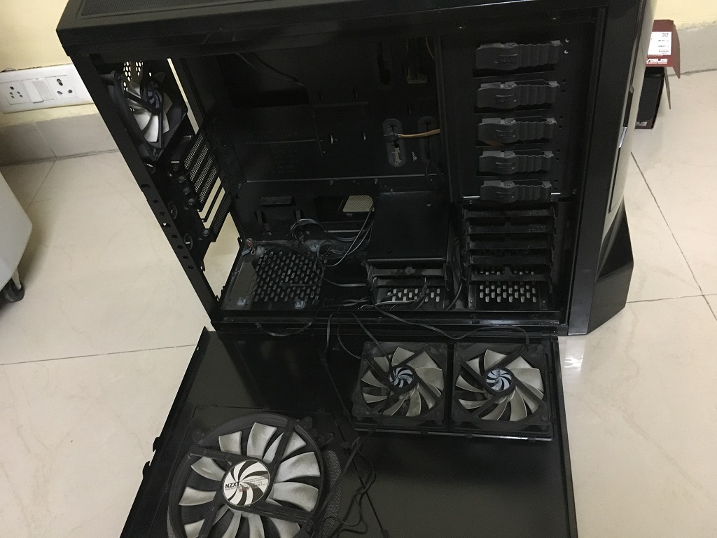 The cabinet has total of 4 working fans (1 LED 120mm Front + 120mm Back + 200mm LED Side + 2 x 120mm Side). Everything is working condition. No physical damage or modification (some minor scratches). If you have any questions do pm me.