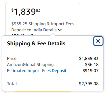 That does not include taxes + shipping to India. It’s $2795 shipped to India, so around 2.4L