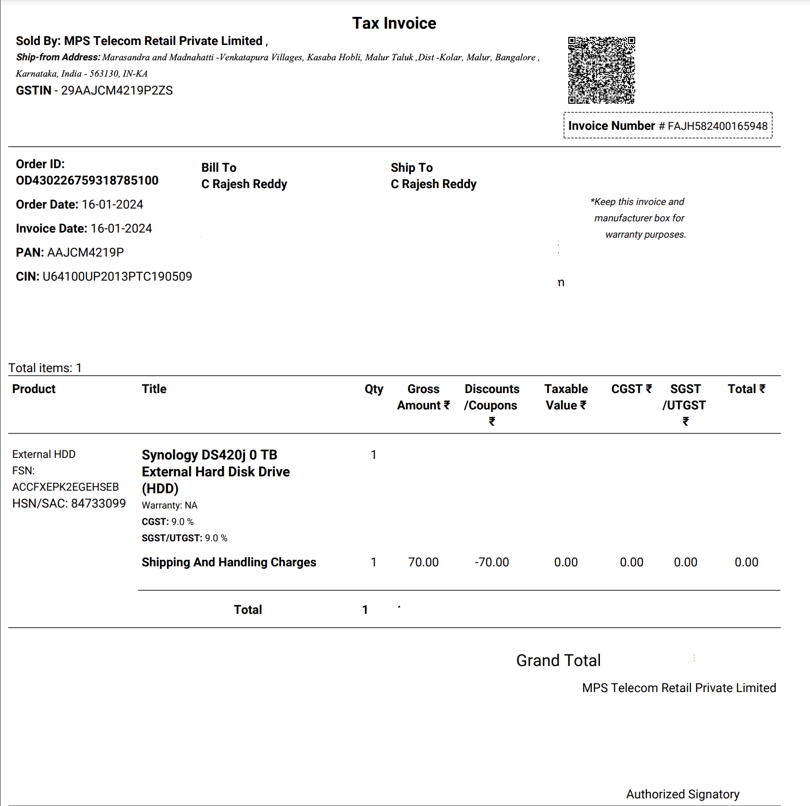 Listing the minimally used back up nas that I got in Jan2024, selling it for 15k plus shipping. No scope of negotiations, i’ll just keep it stored than selling below this price. Prefer someone from Bangalore who can come check and pickup. Only have the nas and powerbrick. Don’t have the box. So shipping is difficult but can do at the expense and the risk of shipping is on buyer.